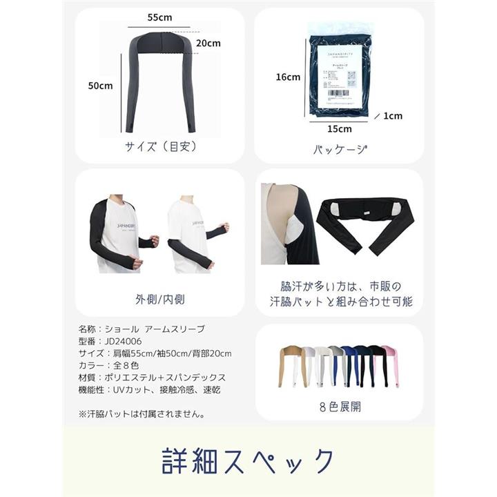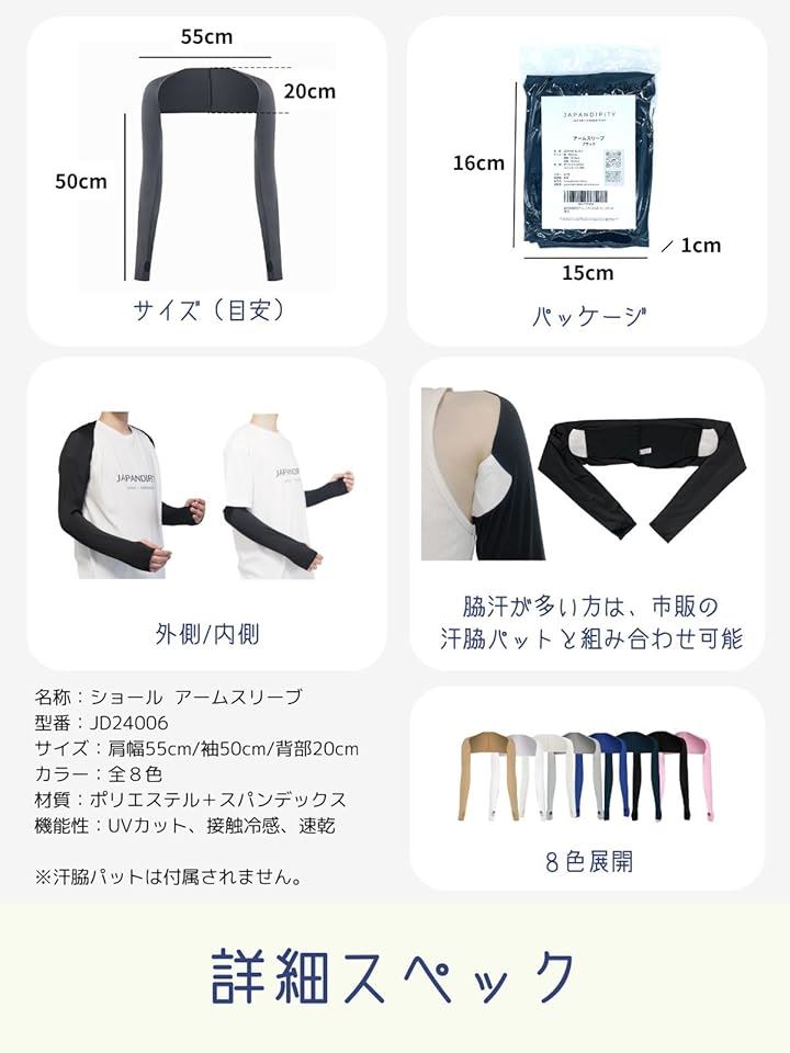 [JAPANDIPITY] ズレ落ちない アームカバー ラッシュガード 全8色 フリーサイズ ユニセックス - ショール風 ボレロ風 uvカット UPF50+ 接触冷感 日焼け対策 ゴルフ テニス スポーツ |