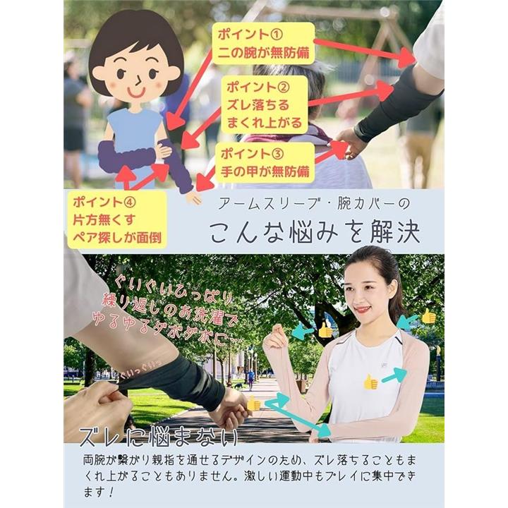 「ズレない」通常のアームカバーやアームスリーブは、左右2本に分かれています。