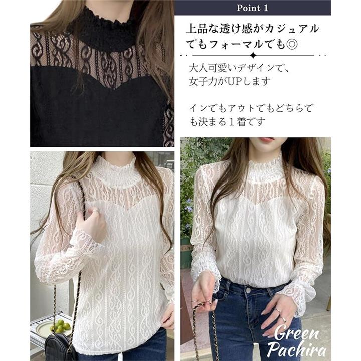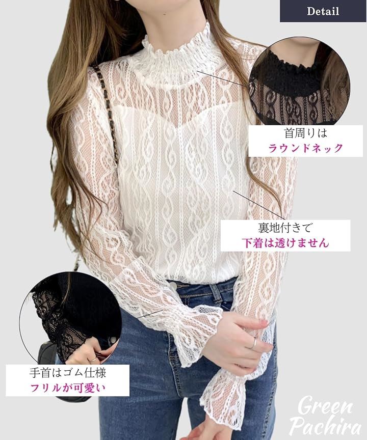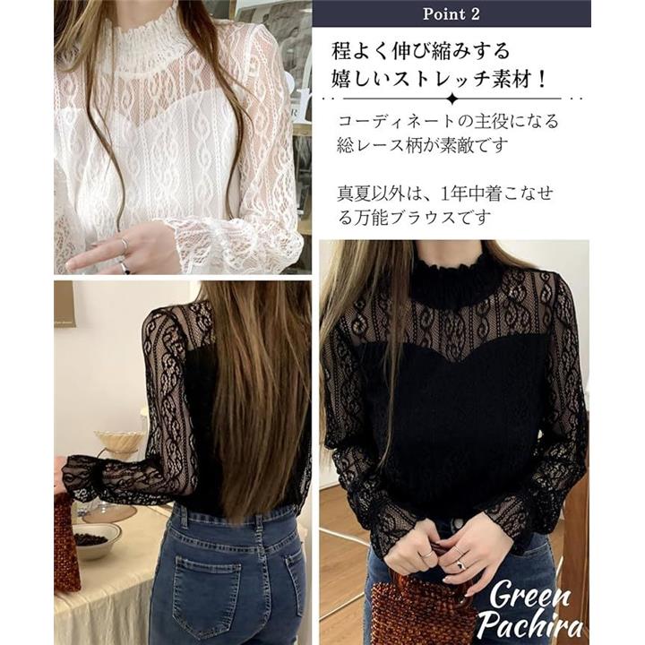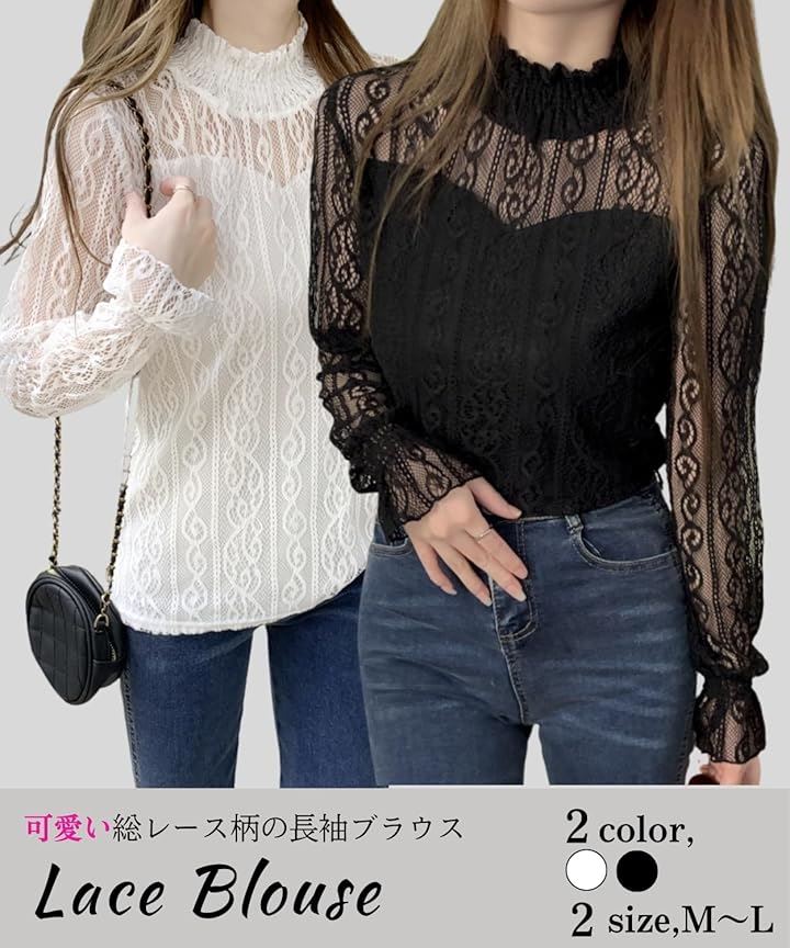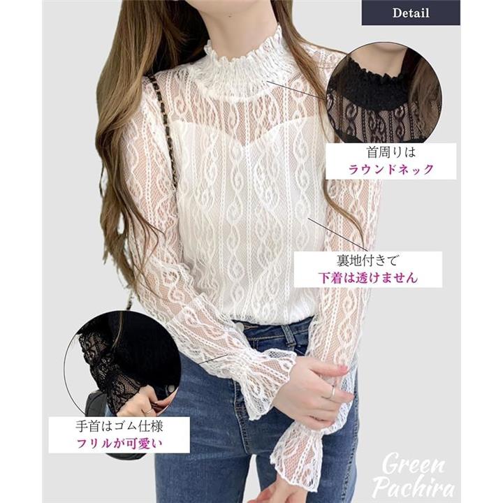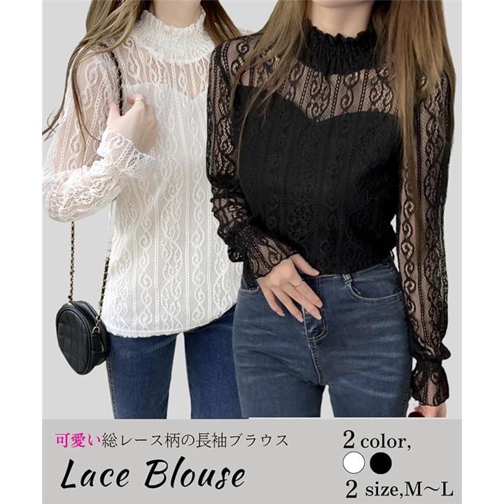 可愛い レース ブラウス チュール トップス 長袖 春夏 レディース アウター カジュアル 20代 デート 丸襟
