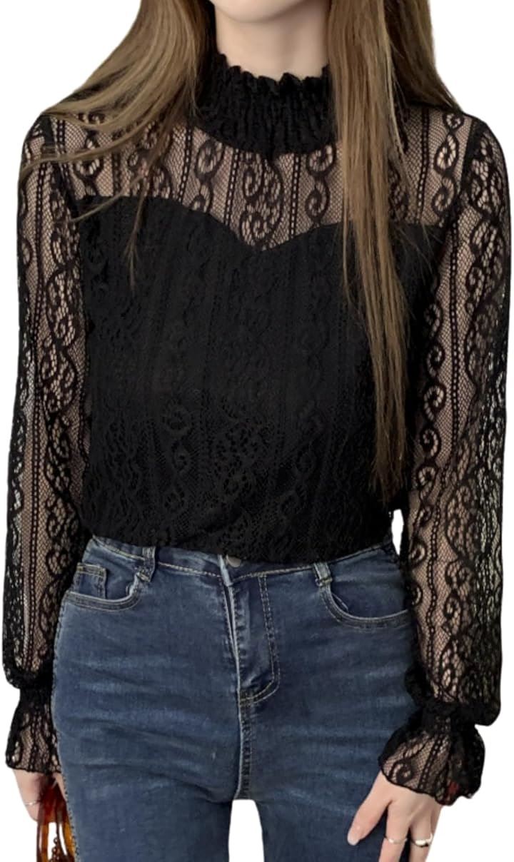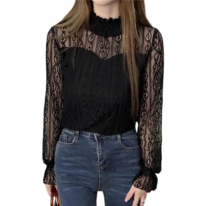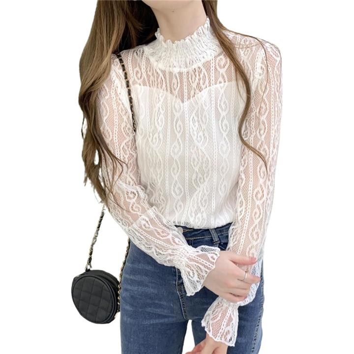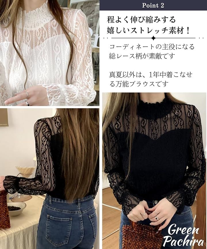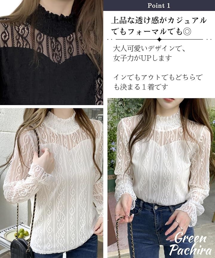 可愛い レース ブラウス チュール トップス 長袖 春夏 レディース アウター カジュアル 20代 デート 丸襟