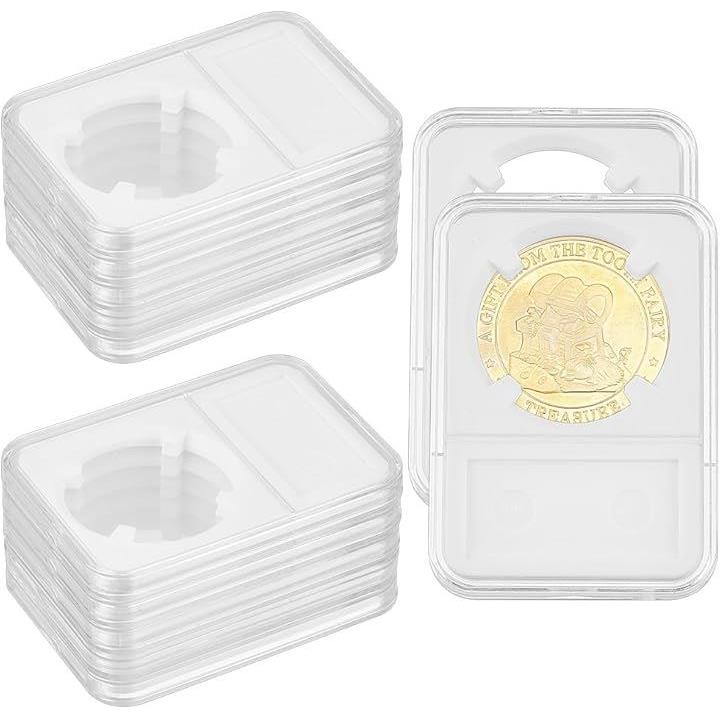 12個 記念硬貨 ケース プラスチック コインケース ディスプレイ 収納 コイン収納 コインホルダー コレクター用 コレクション用品 クリア ホワイト