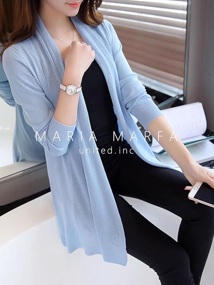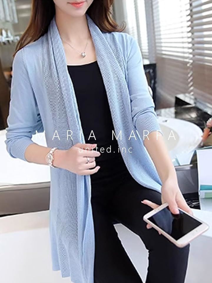 [MARIA MARFA] UVカット ロング カーディガン メッシュ編み ゆったり ニット レディース 羽織 無地 ふんわり アウトドア コンパクト 通気 カジュアル 前開き リネン 軽量 トップス 長い 長め 服 フェス 薄手 ロング丈 4S-M29 |