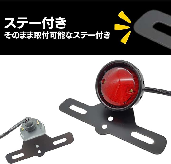 互換品バイク テールランプ ブレーキランプ ステー付 チョッパー カスタム SR STOP パーツ アクセサリー 汎用 リア ブレーキランプカバー
