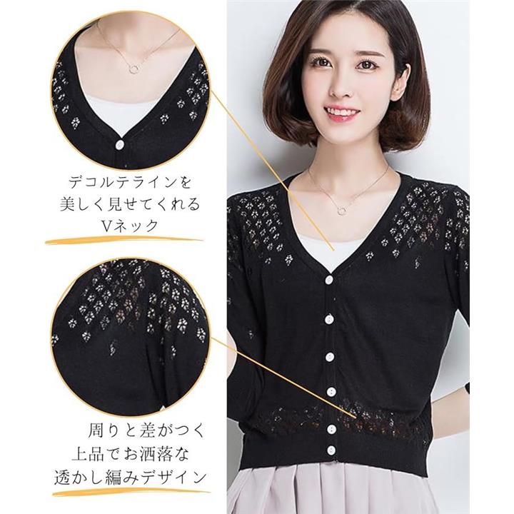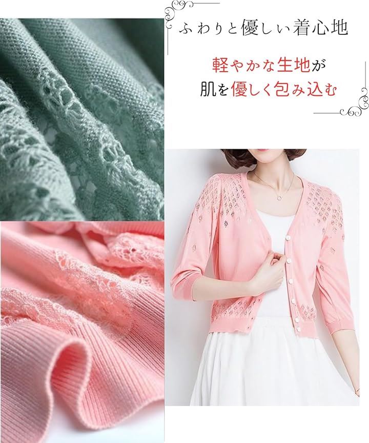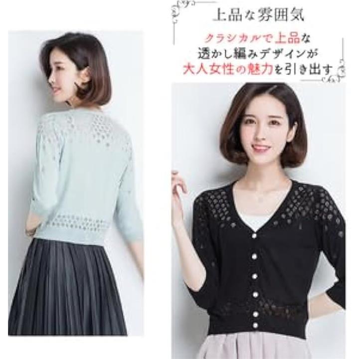 ボレロ レディース 夏 シアーカーディガン レース ショート丈 薄手 uvカット 日焼け防止 長袖ボレロ 透かし編み ニット カーデガン 羽織 羽織り シースルー メッシュ