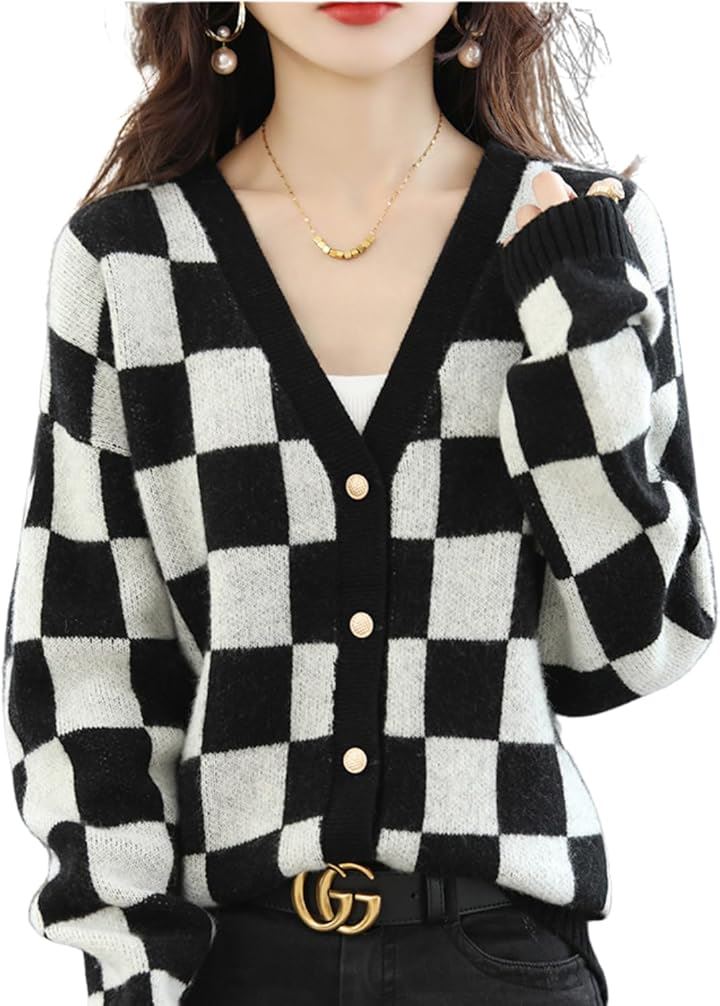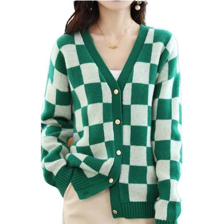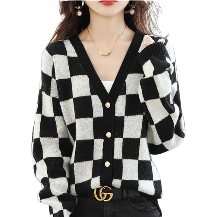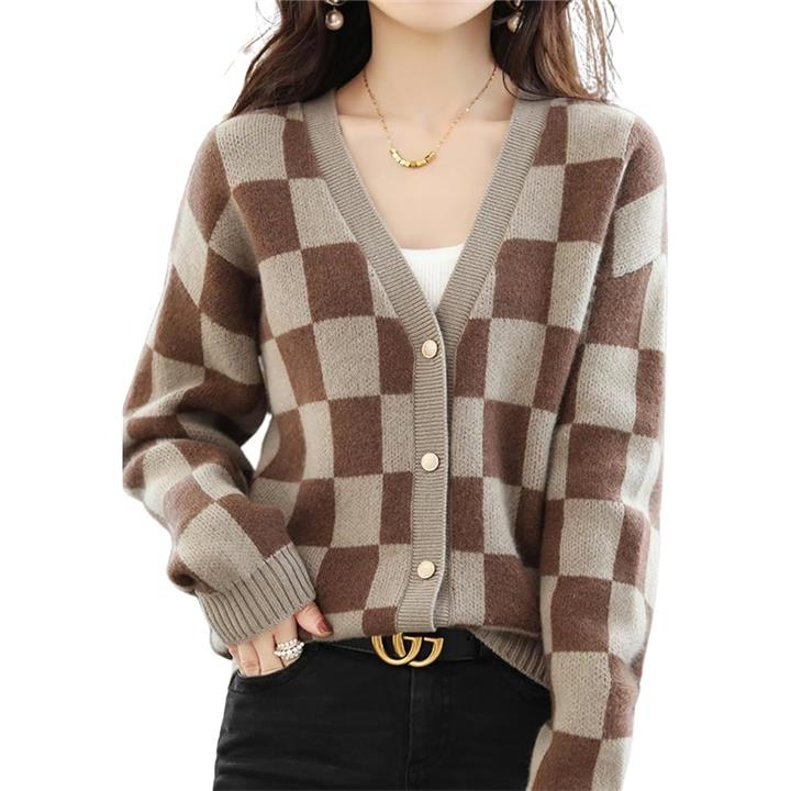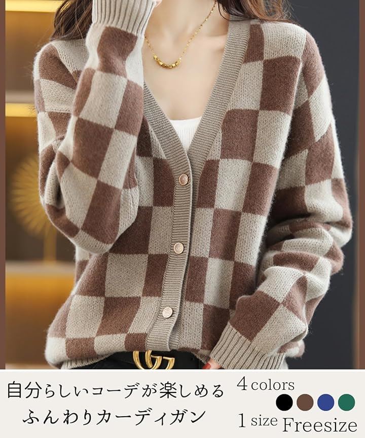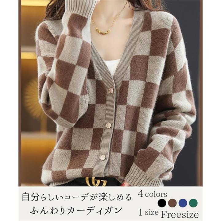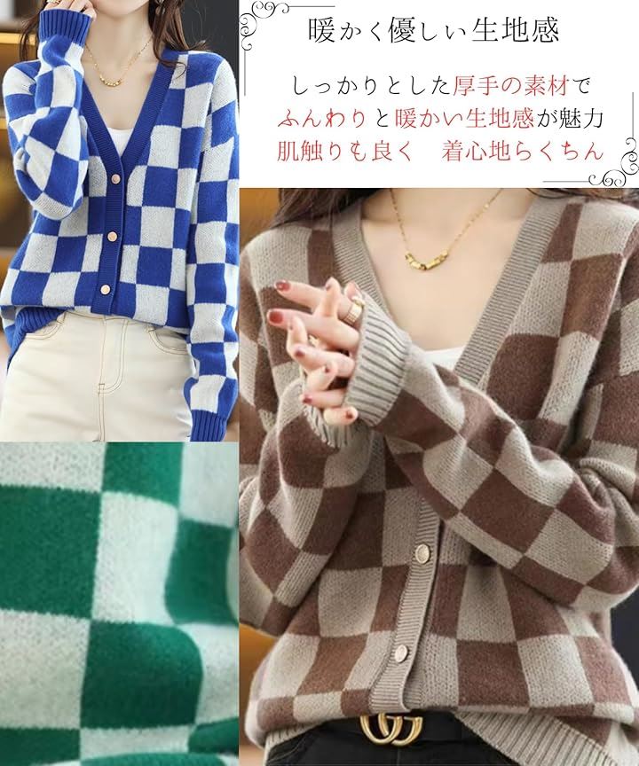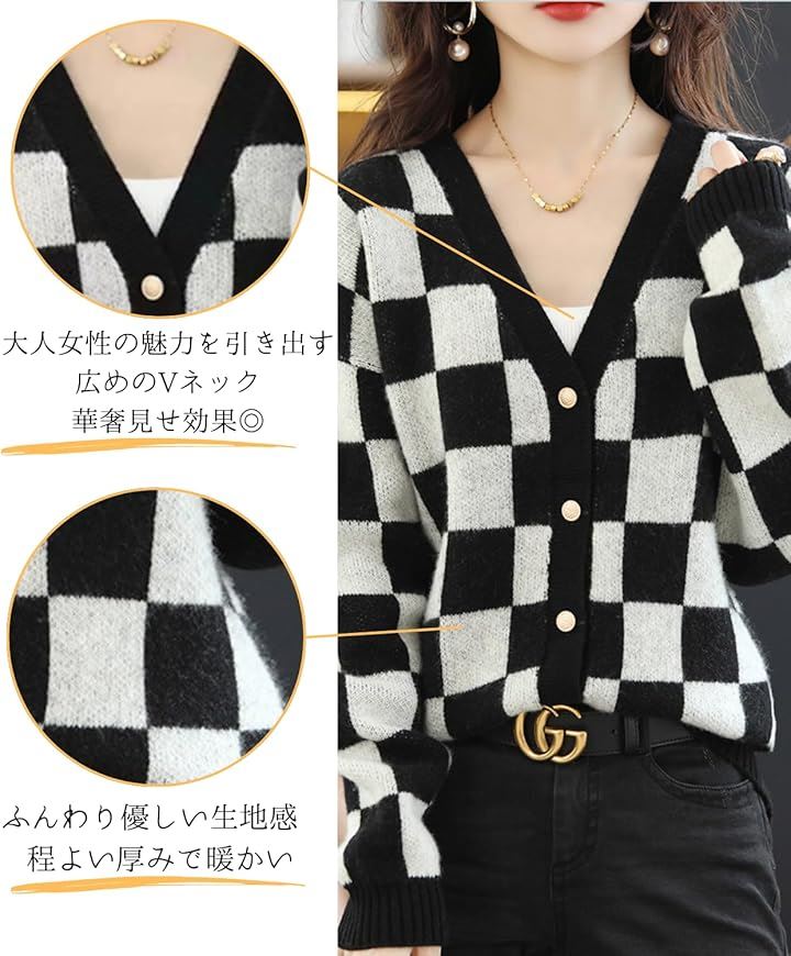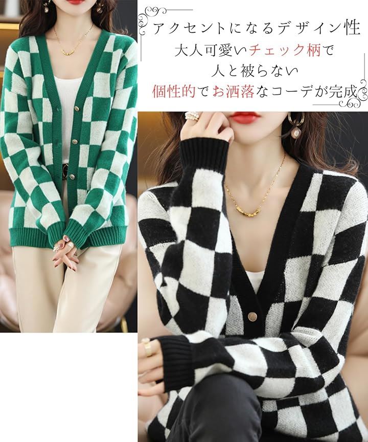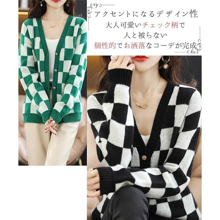 ギンガムチェック カーディガン レディース カーデガン 柄あり トップス オフィス ニット 暖かい ボタン 長袖
