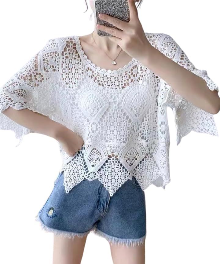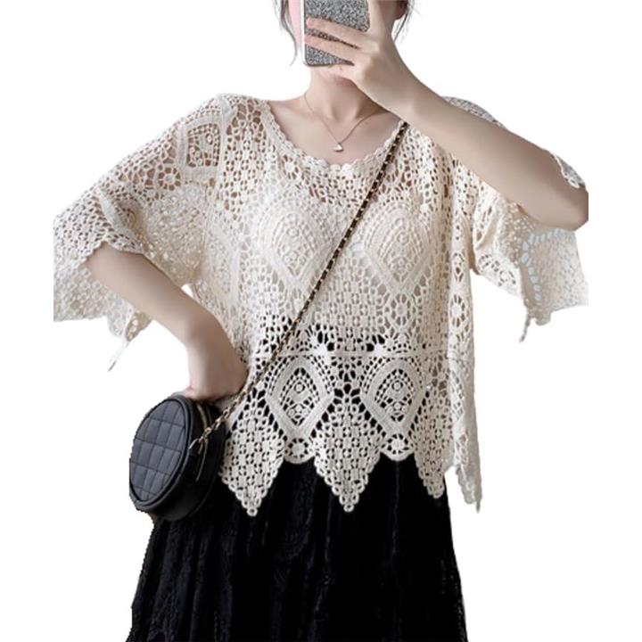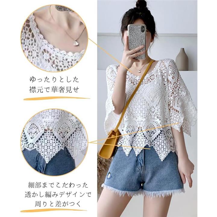 カーディガン レディース ショート丈 トップス 夏 サマーベスト 半袖 メッシュベスト サマーニット 透かし編み 透かし網 ゆったり 大きいサイズ