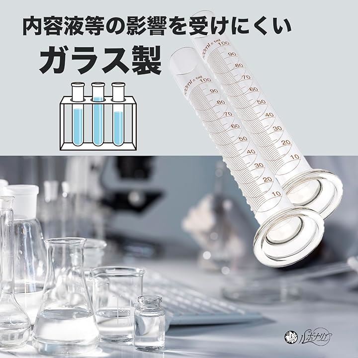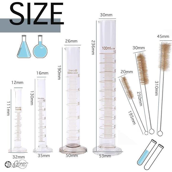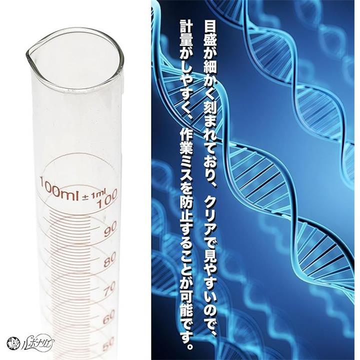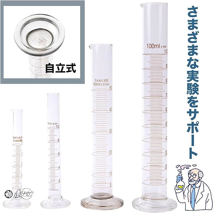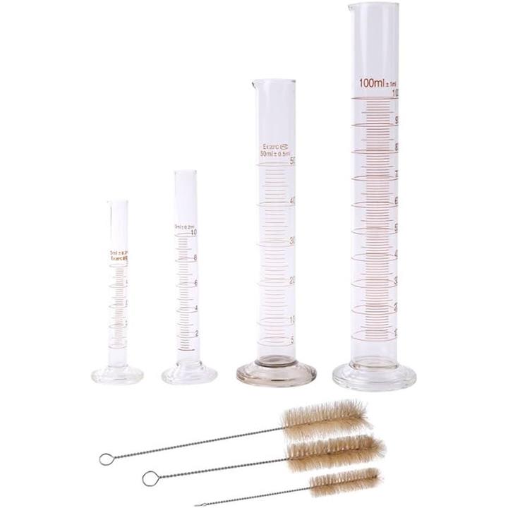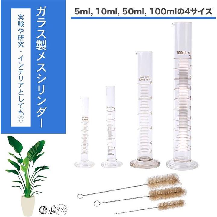 メスシリンダー ガラス 5ml 10ml 50ml 100ml セット ガラス製 ブラシ付き 見やすい目盛り クリア 7点セット