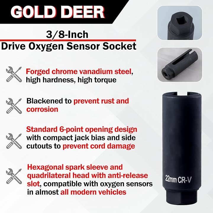 互換品 o2センサーソケット 22mm 酸素センサーソケット ドライブ酸素センサーソケット 駆動式酸素センサーソケット 取り外しソケット22mm 差込角9.5mm ユニバーサル