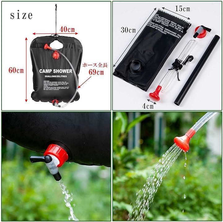 ポータブルシャワー 20L アウトドア 簡易シャワー コンパクト 携帯 便利 キャンプ 防災 電池不要 タンク