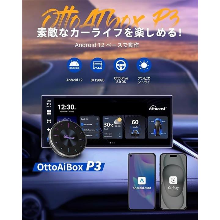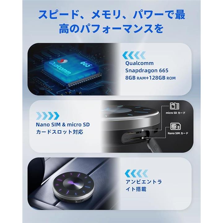 互換品Ottocast OttoAibox P3 オットキャスト Android 12アタブター nano SIMカード/Micro SDカードスロット HDMI出力端子搭載 動画視聴可能技適取得済み品