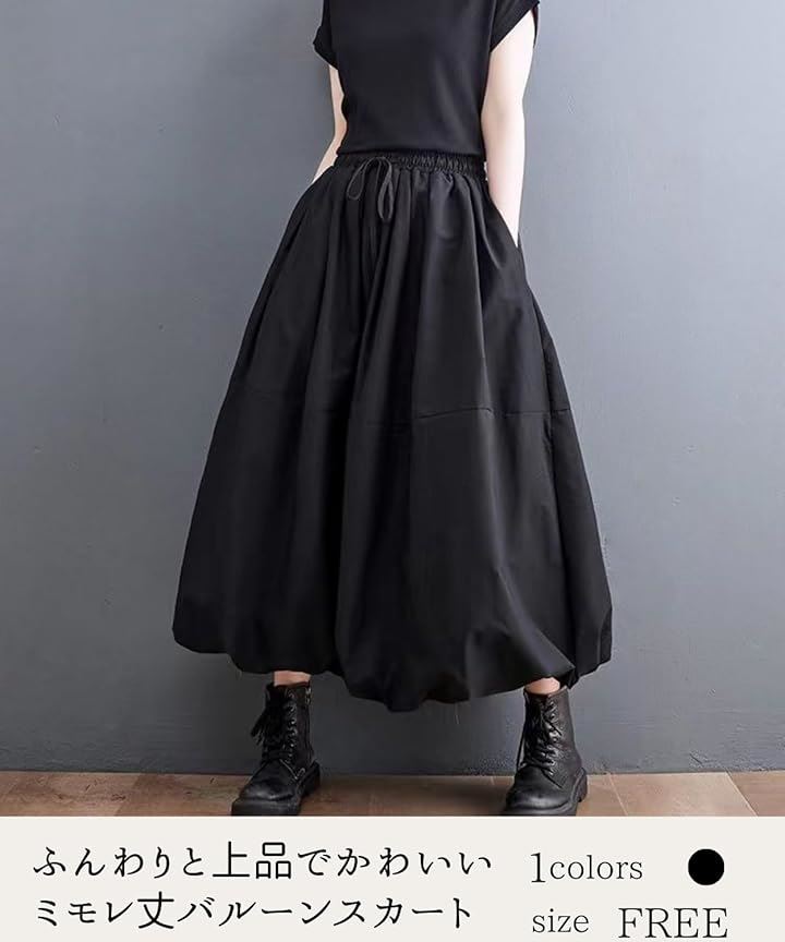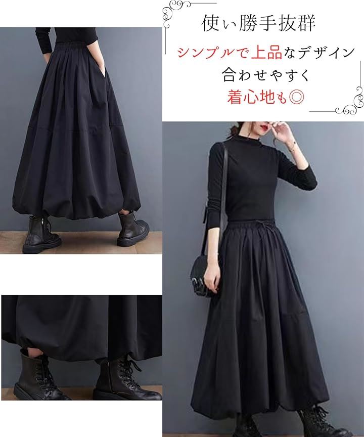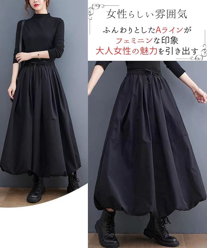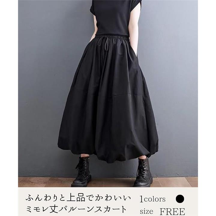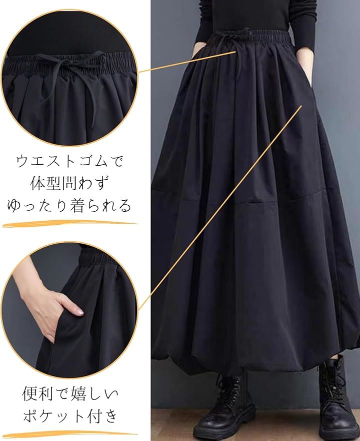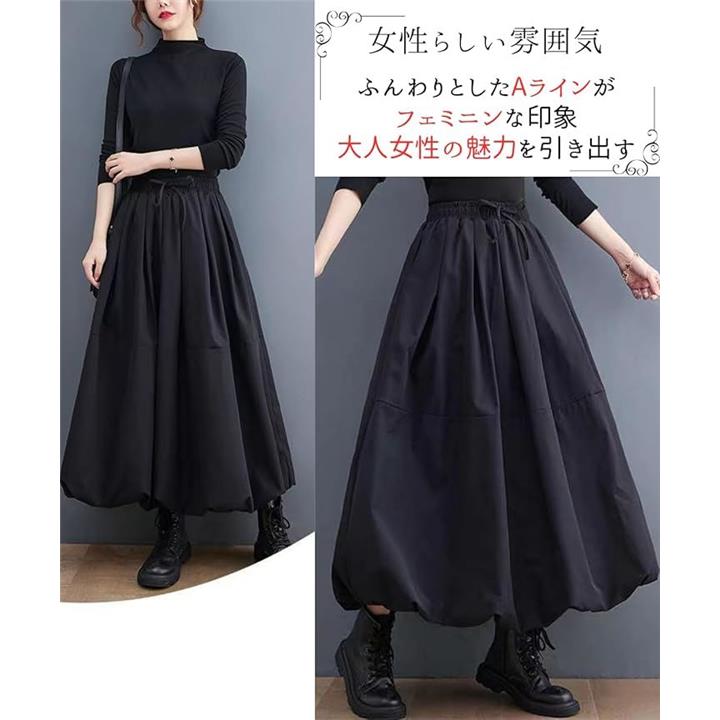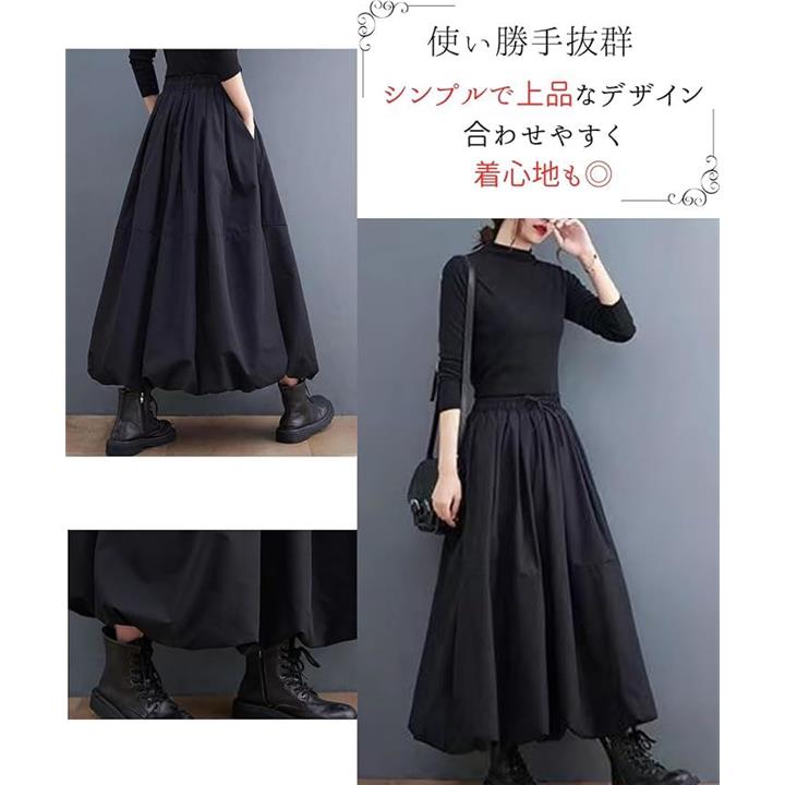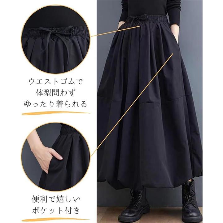 大人可愛い バルーンスカート レディース ミモレ丈 ロング 無地 ウエストゴム 大きいサイズ 秋 冬