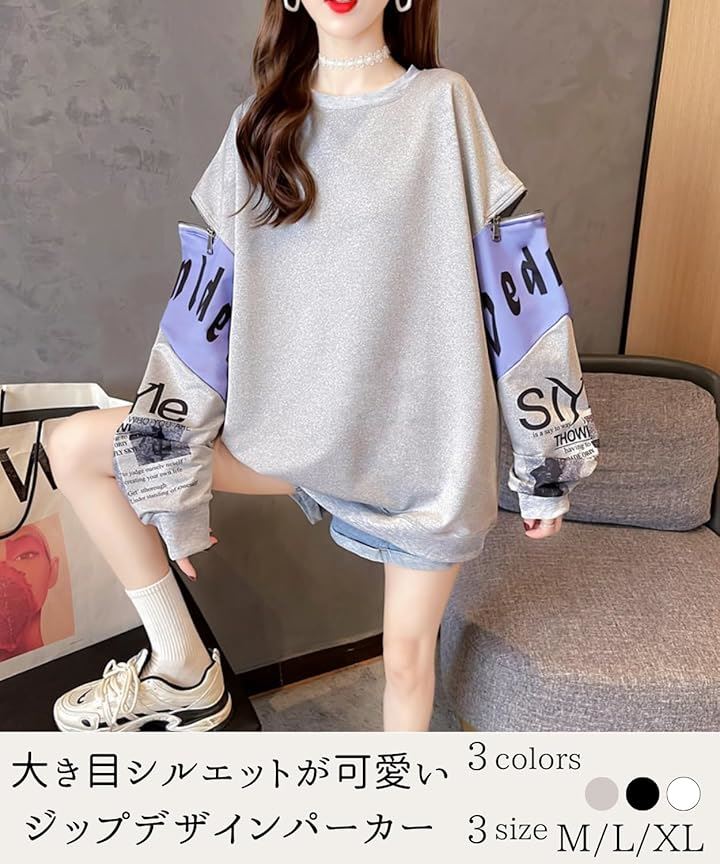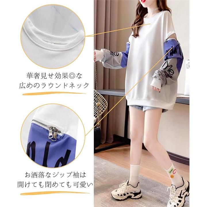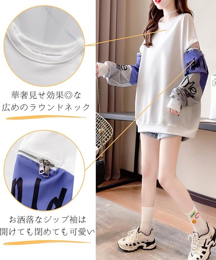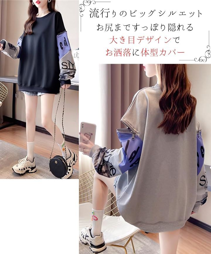 一枚でお洒落がキマる トレーナー レディース おしゃれ 大きいサイズ オーバーサイズ プルオーバー トップ かわいい 軽量 薄手 韓国 韓流 韓国風 ゆったり 長袖