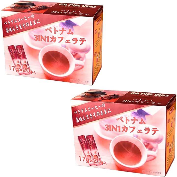 VJBUSSAN ベトナムコーヒー 3IN1 カフェラテ2箱 17gx40袋 インスタントコーヒー スティックコーヒー ロブスター コーヒー豆 カフェオレ/カフェヴィーンズ
