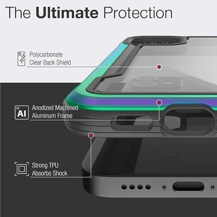 アルミニウム + ポリカーボネイト + TPU の3種類の素材を使用したデザイン・衝撃吸収を両立したスタイリッシュなケースです。
