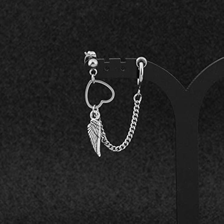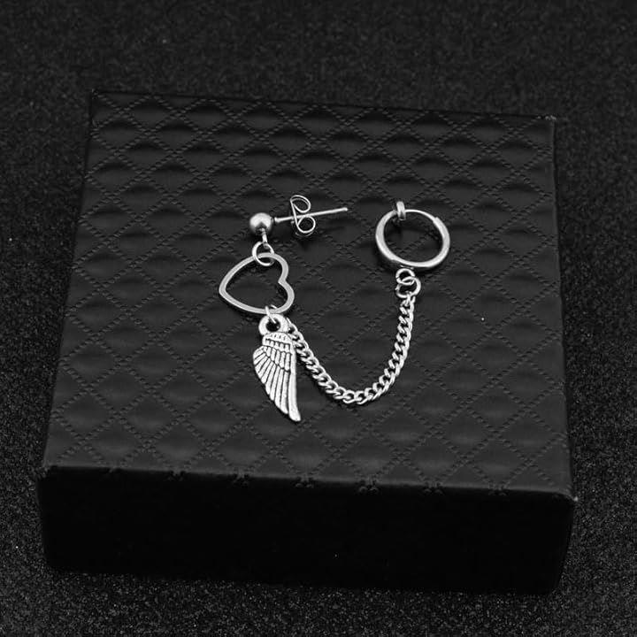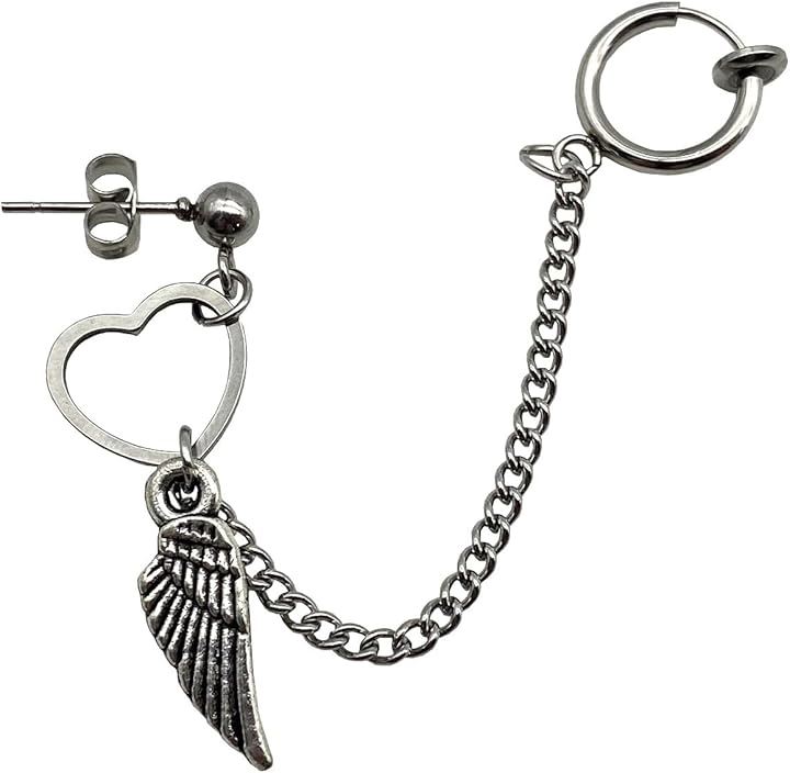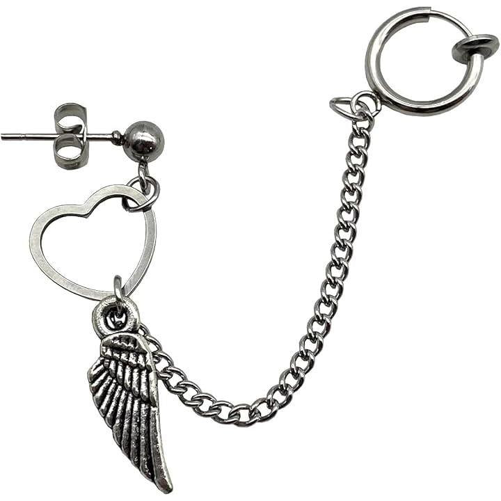 ピアス/イヤリング フェザー チェーン メンズ・レディース 羽根 韓国ファッション 人気デザイン ハートリング 片耳用アクセ