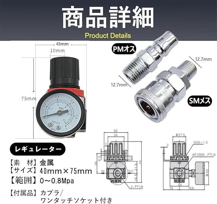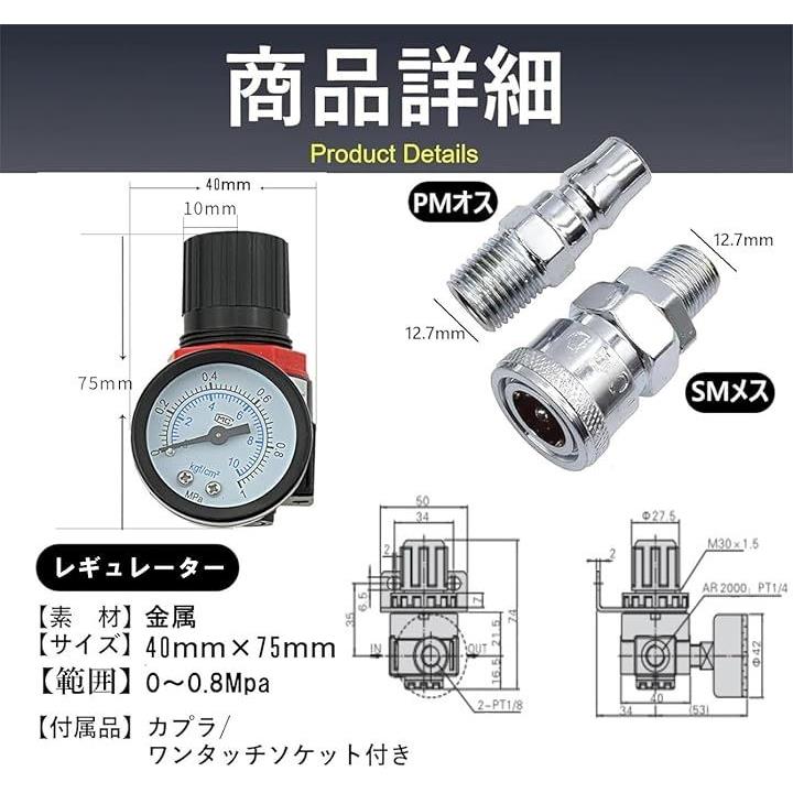 エアーレギュレーター 圧力調整弁 エアーカプラー エアコンプレッサー 圧力弁