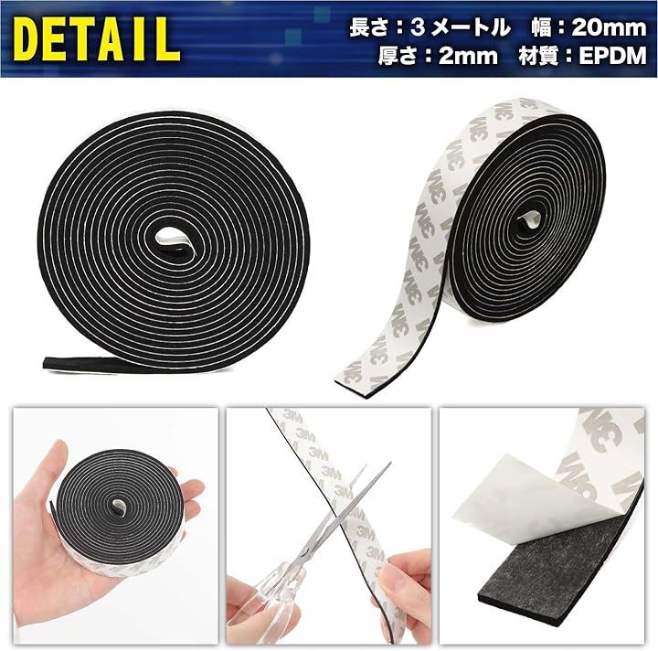 スプレンノ 平型ゴム EPDM 粘着テープ 厚み 2mmx幅 20mm 長さ スポンジ クッション 素材 防音 防振 効果