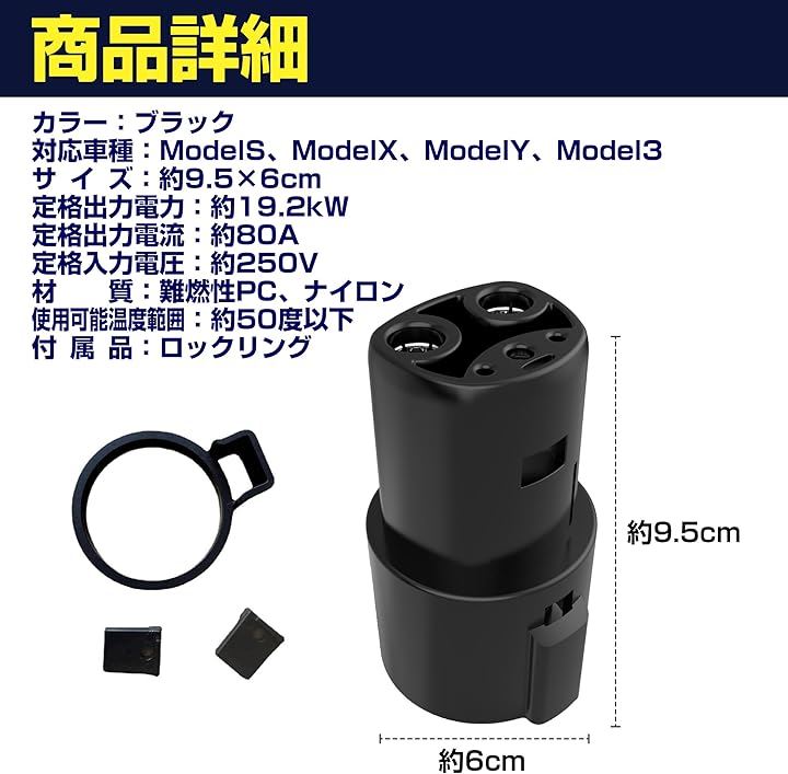 EdisonBrain J1772 プラグ ロック 付き EV 充電 変換 アダプタ テスラ対応 80 Amp / 240V AC 電気自動車 モバイル コネクタ
