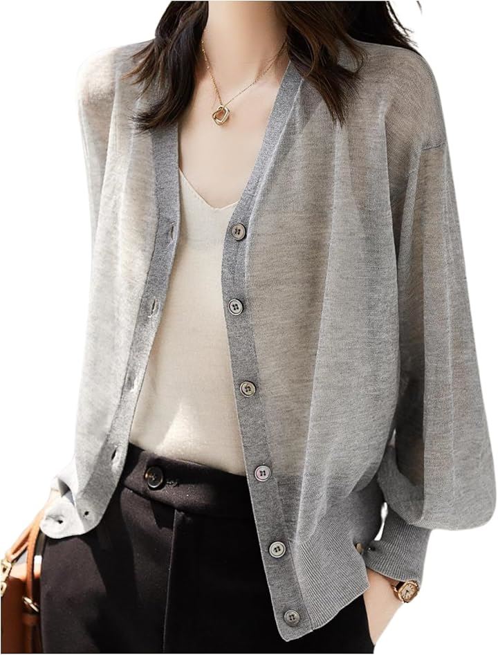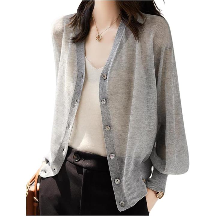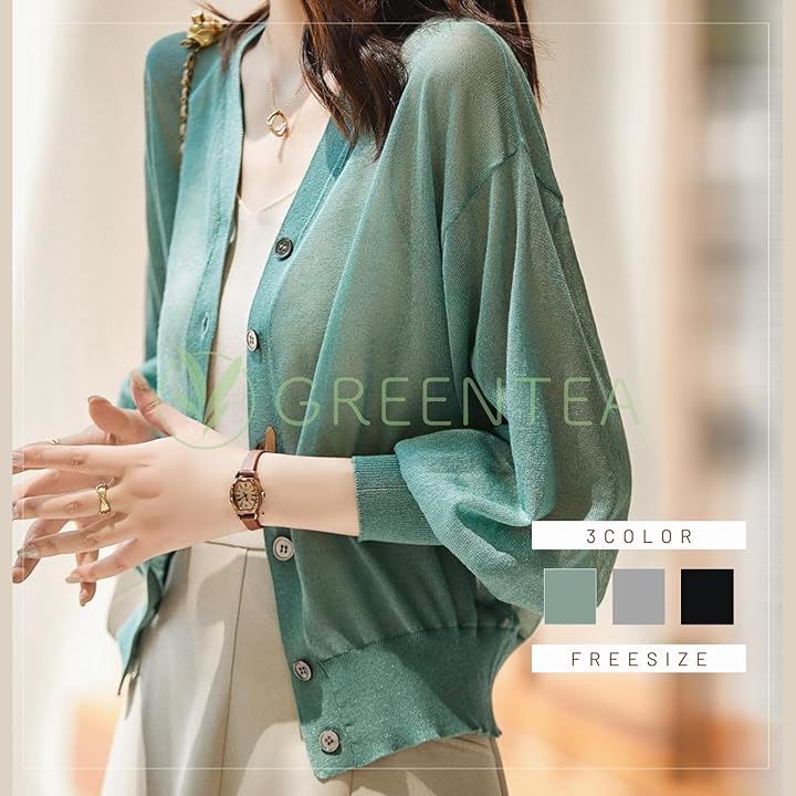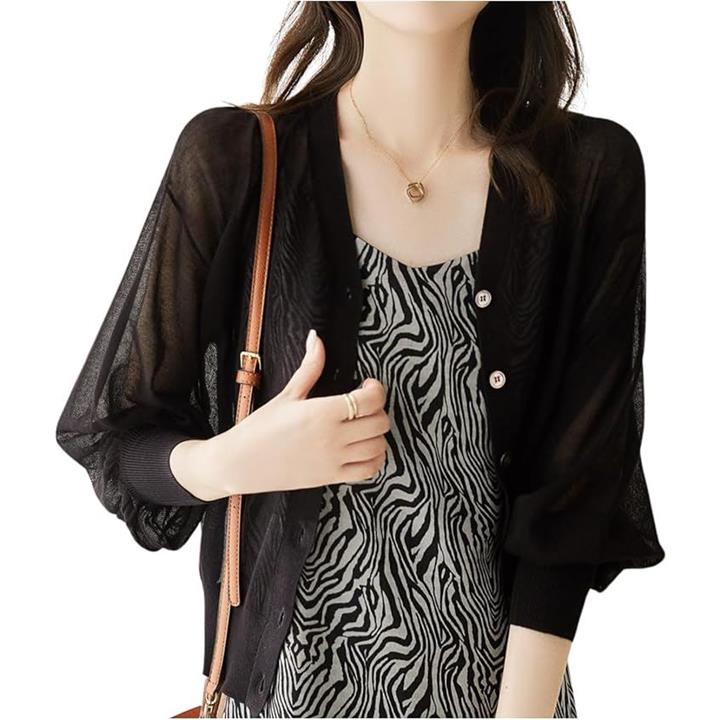 カーディガン ショート レディース uvカット 薄手 vネック 長袖 きれいめ 夏 ユッタリ 大きいサイズ