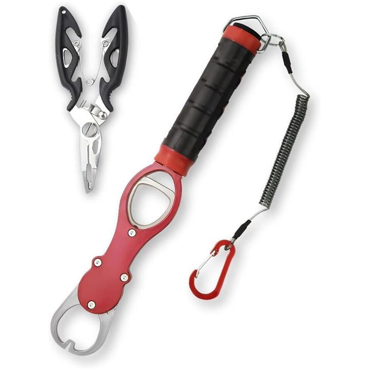 魚掴み フィッシュグリップ フィッシュキャッチャー フィッシュホルダー フィッシュグリッパー つかみ カラビナ付き 計量 機能付き 防錆