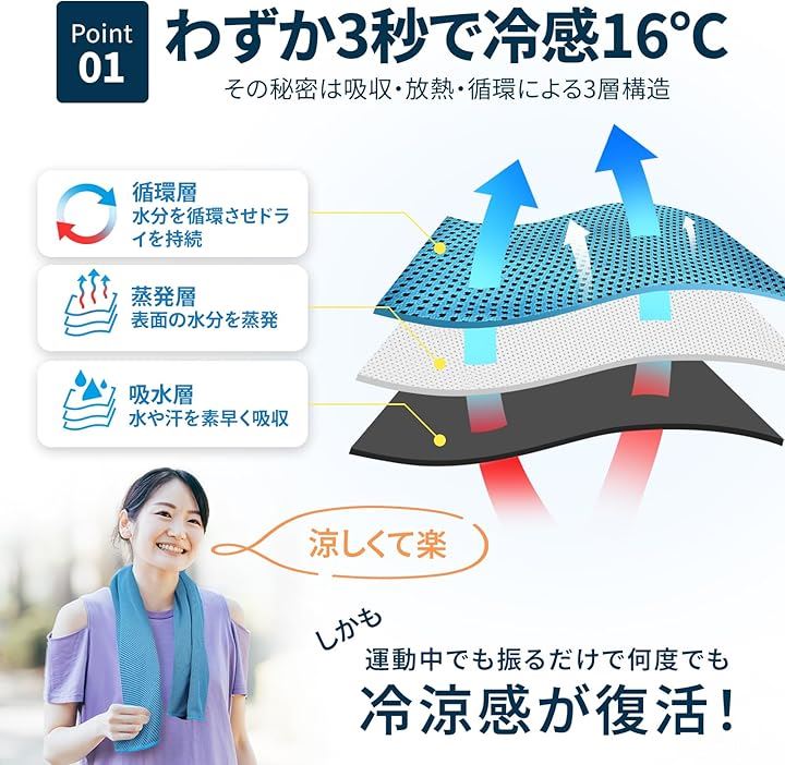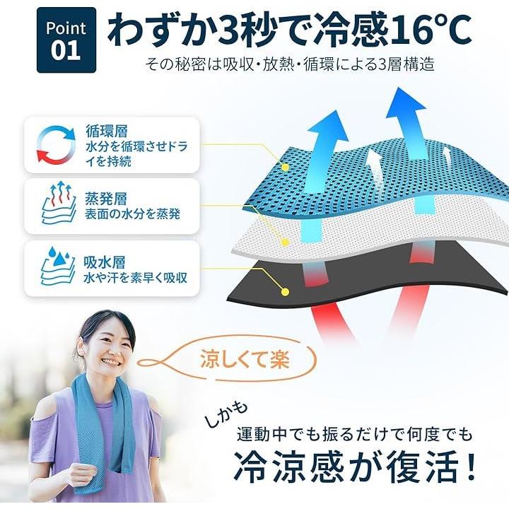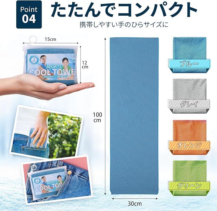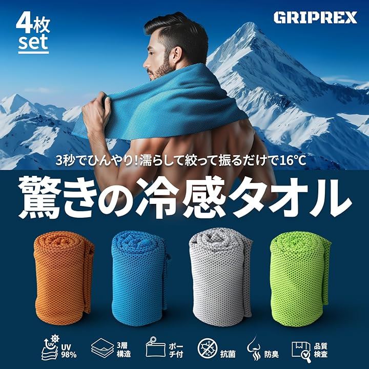 冷感タオル いつでもひんやり快適・抗菌・防臭の清潔感4色set 熱中症対策 UVカット