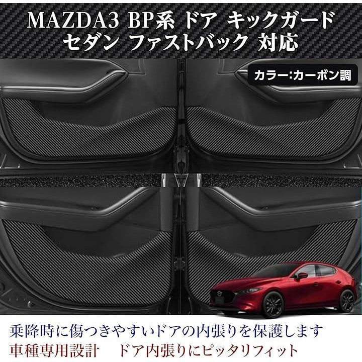互換品マツダ MAZDA3 BP系 セダン ファストバック 適合 ドア キックガード 傷防止 プロテクター マット 4P