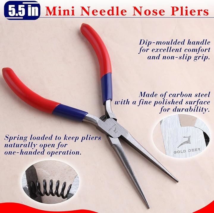 先細ラジオペンチ ギザなし 小型 先細ペンチ 先細プライヤー 手芸 リードペンチ 先細リードペンチ ニードルノーズプライヤー 極細 針はずしプライヤー ストレートタイプ バネ付 ミニマイクロ 軽い つかむ 曲げる 挟む アクセサリー ビーズ クラフト ハンドメイド