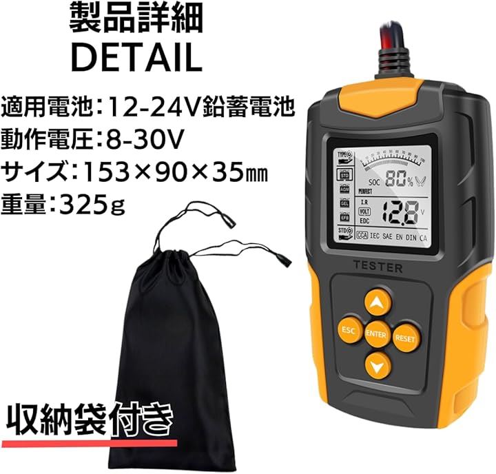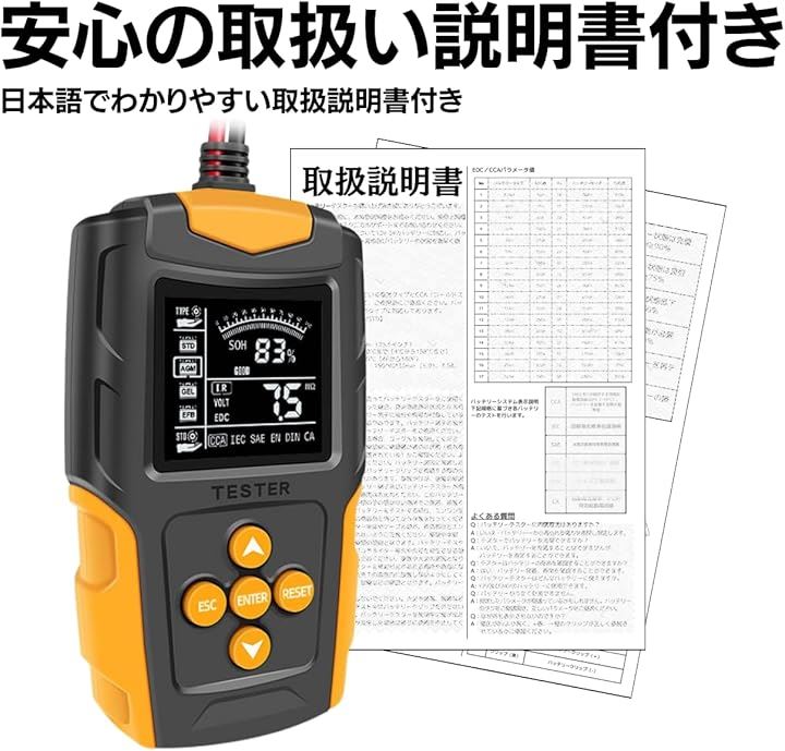 互換品車用 バッテリーチェッカー 日本語説明書付き カーバッテリー バッテリーテスター チェック テスト バイク ccas 12V 24V
