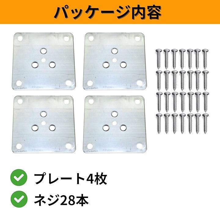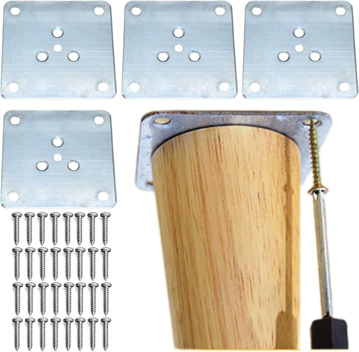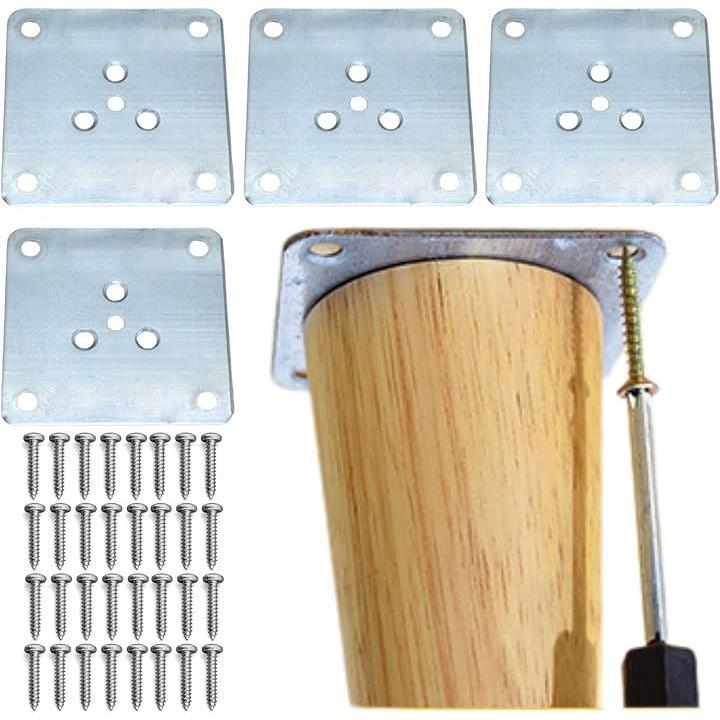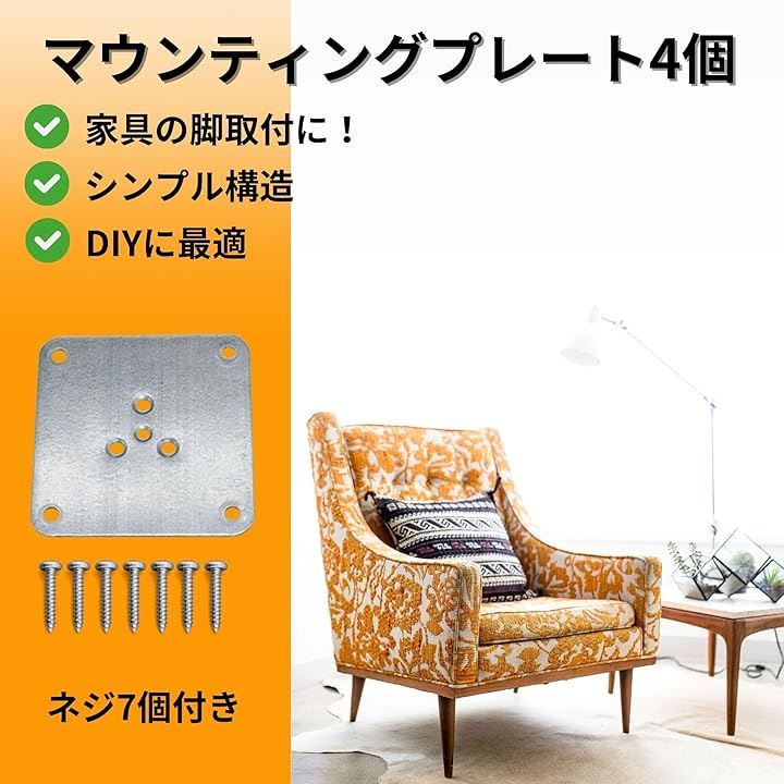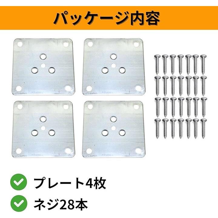 互換品 家具脚プレート テーブル脚 金具 接続金具 取付 4個 家具脚マウントプレート 7cmx7cm ネジ28本