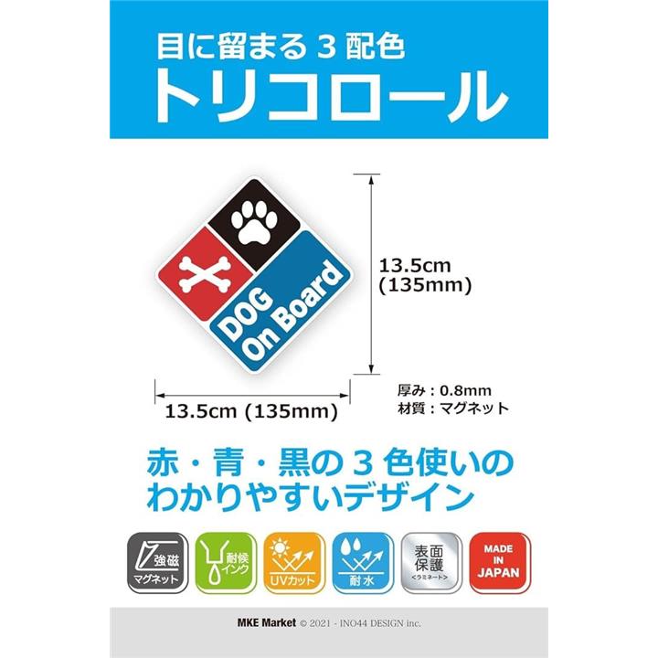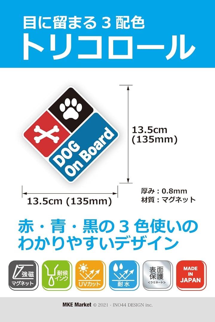 MKE 目に留まるデザイン.. ドッグインカー 耐水 カーステッカー (トリコロール/マグネット) |