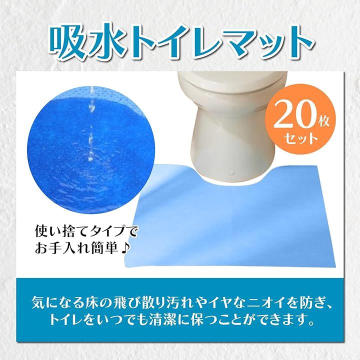トイレマット 使い捨て 20枚 吸水タイプ スベリ止め付き カットできる 男性小便器対応