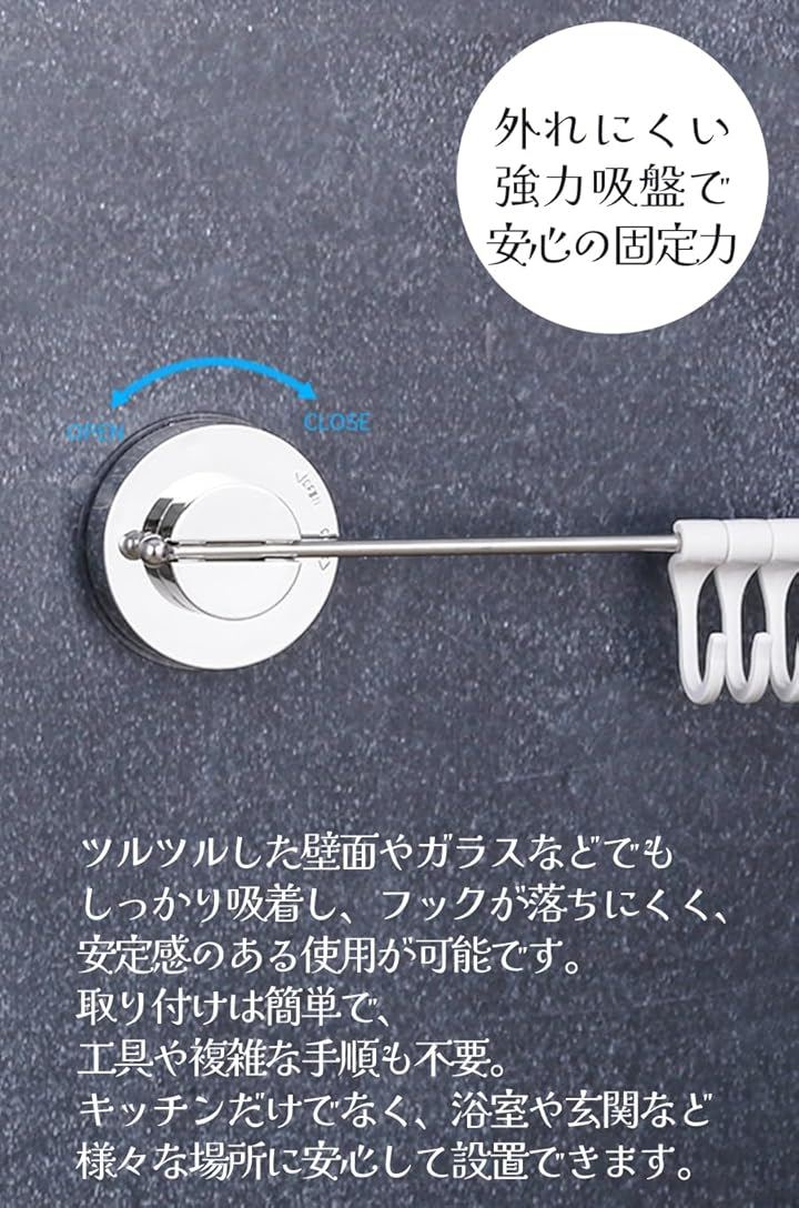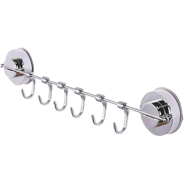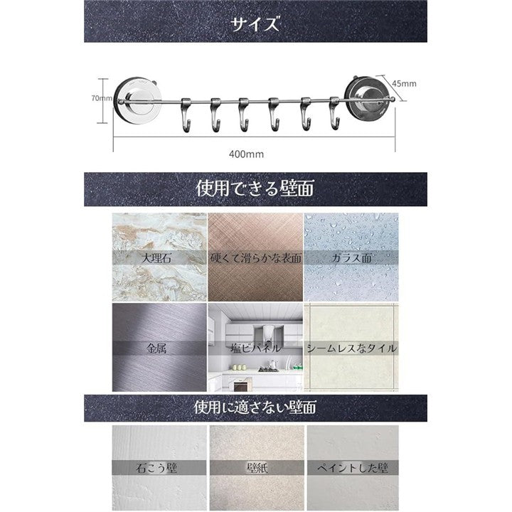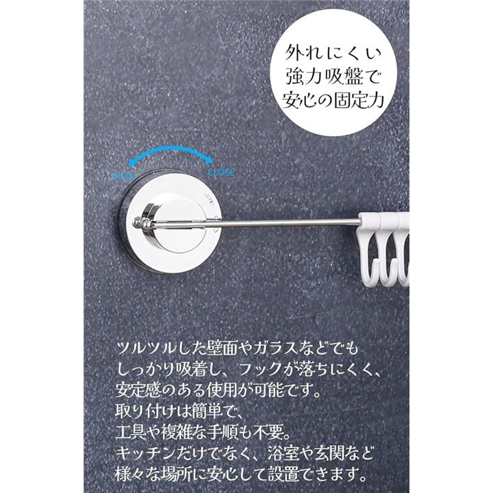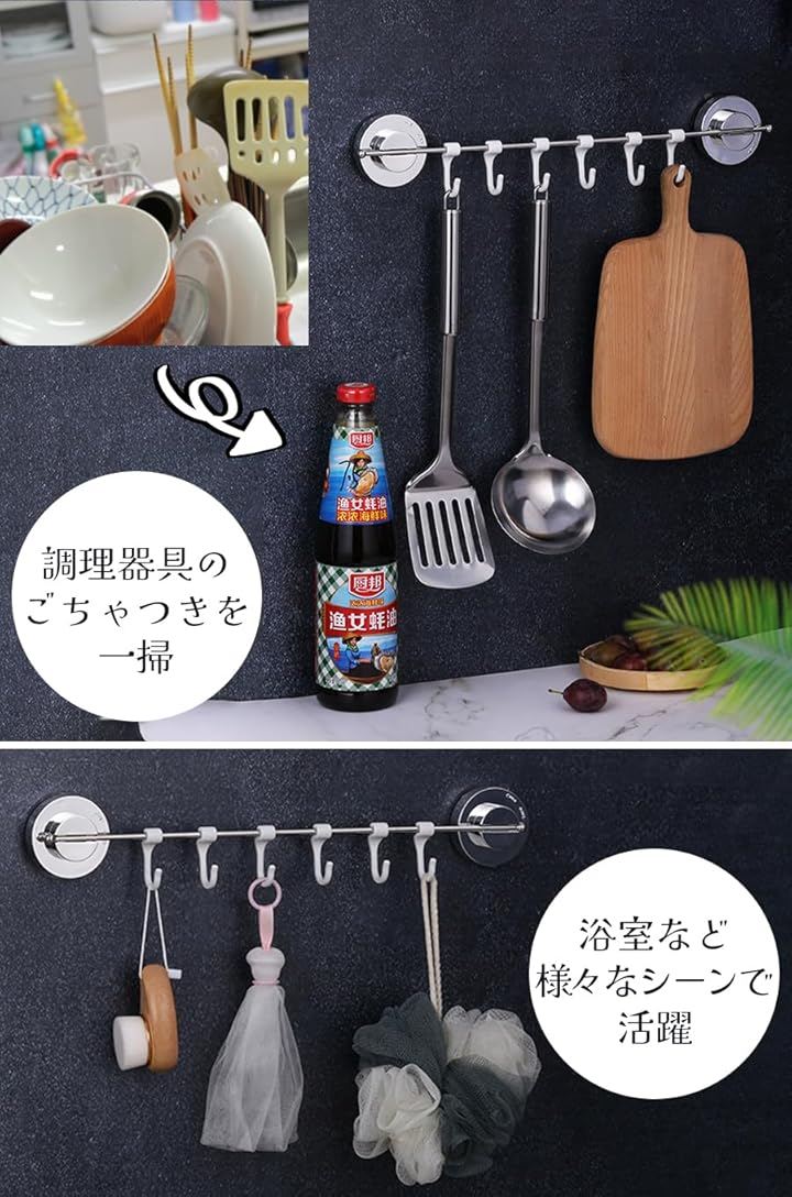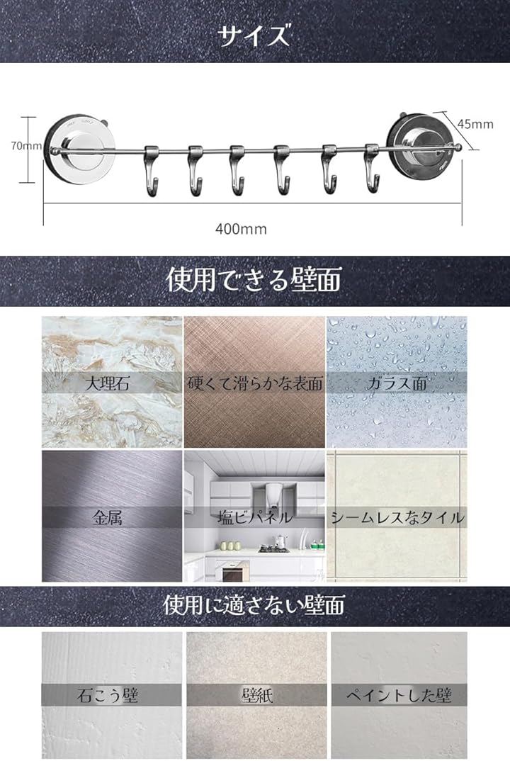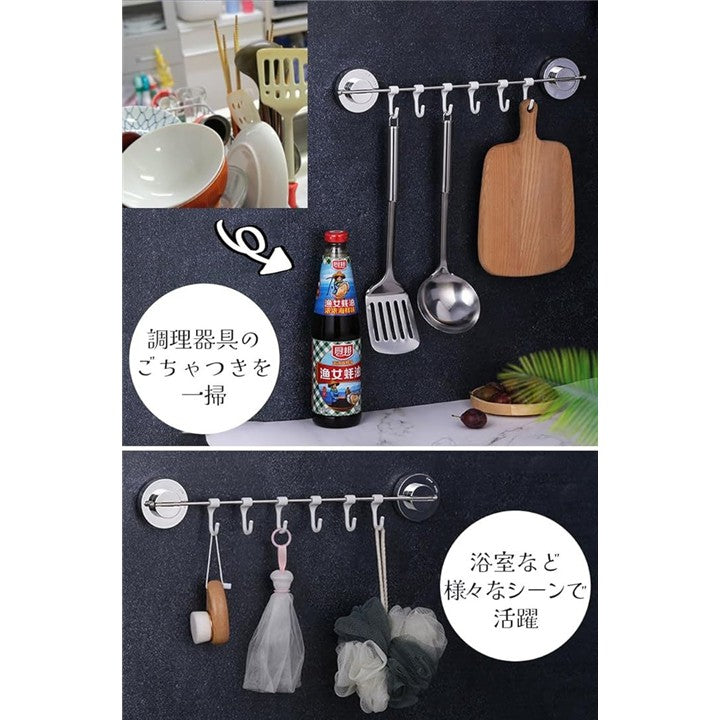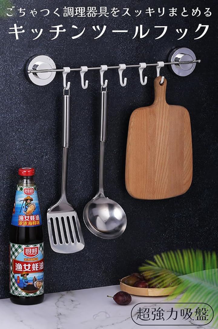 キッチンツール 吸盤フック 収納 キッチン用品 超強力吸盤 フライパン 調理器具 バスルーム キッチン収納 シルバー 40cm
