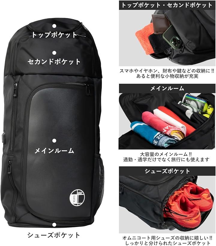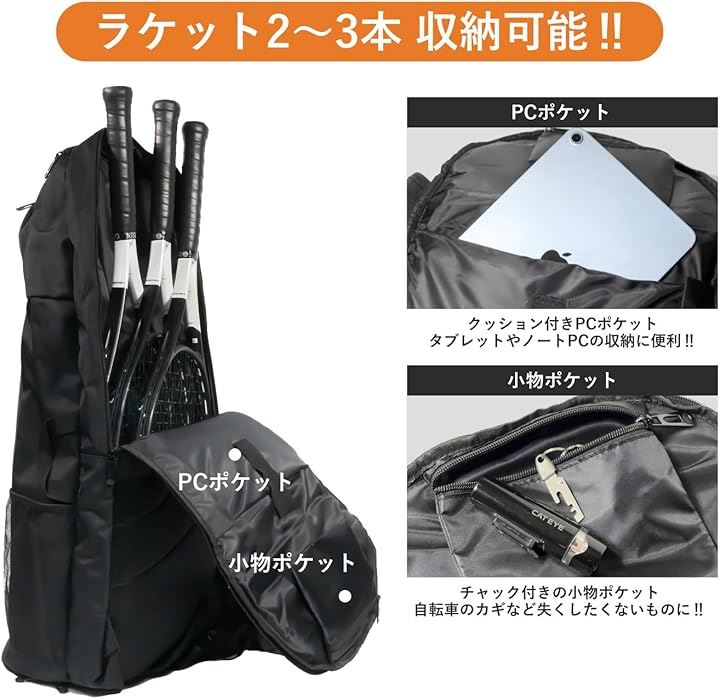 ラケットバッグ テニス バックパック リュックサック テニスバッグ 2本 シューズ 2足 収納