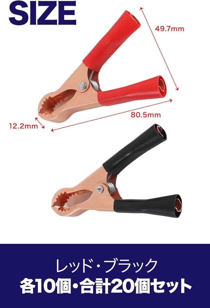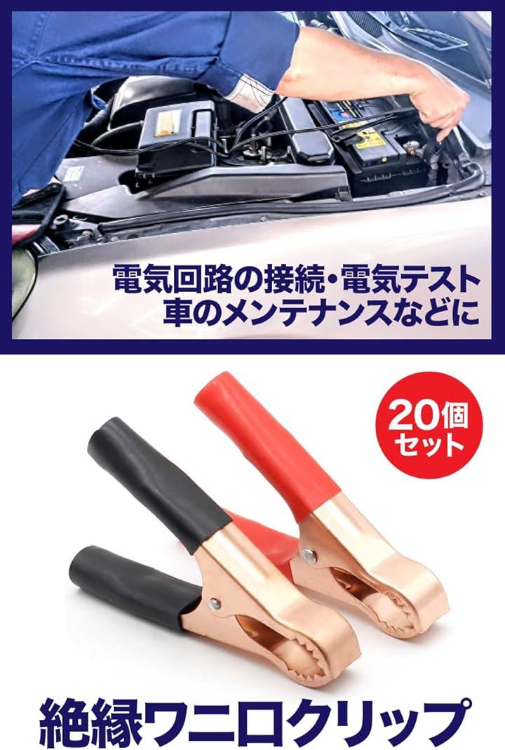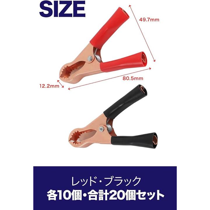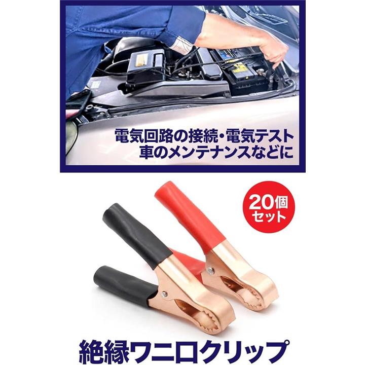 ワニ口クリップ テストクランプ 電気テスト 接続 50A 絶縁ハンドル カーバッテリー 20個セット