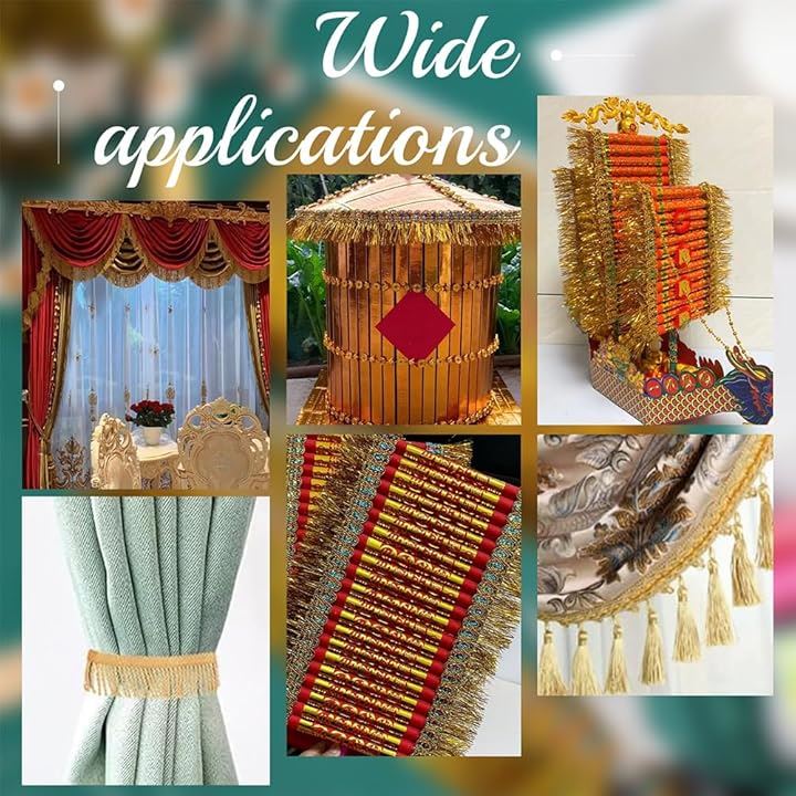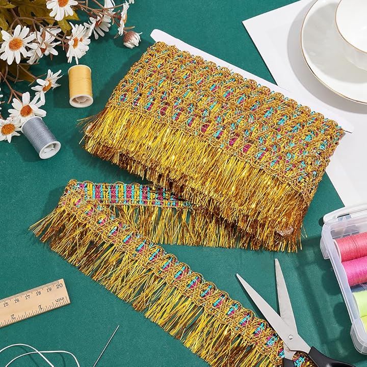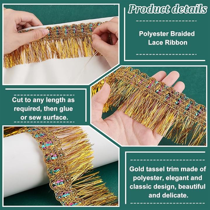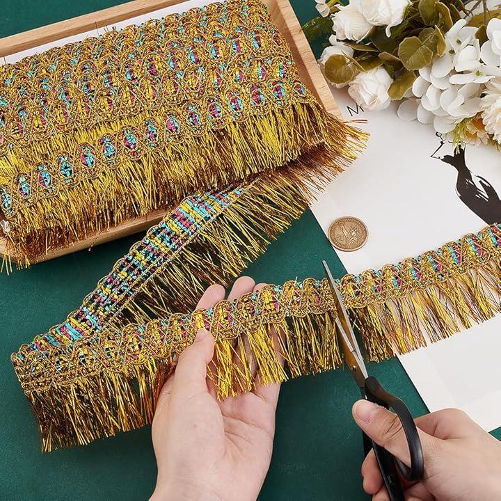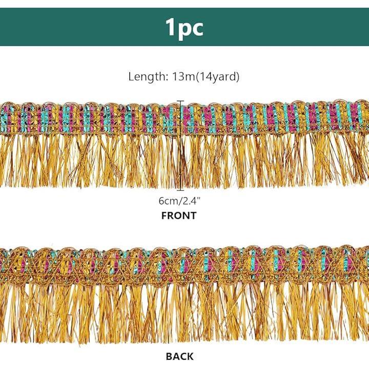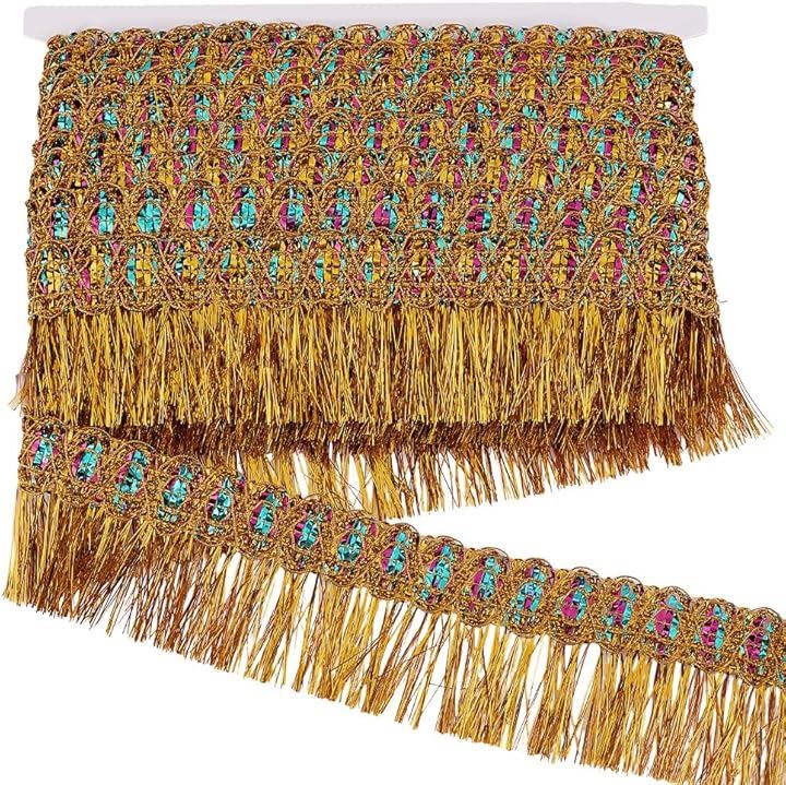 スパンコールリボン タッセルタイプ ブレード レースリボン 13 メートル長さ 60ミリメートル幅 タッセルレース フリンジ タッセルブレード チェーン DIY 装飾 衣装用 手芸ブレード 材料 カーテン 飾りアクセサリー おしゃれ 華麗 アンティーク きらきら ゴールド