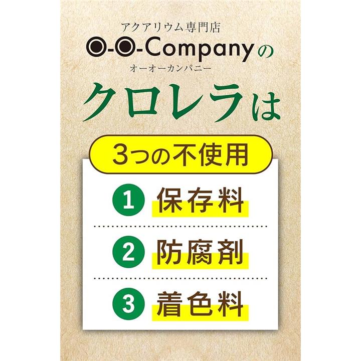 安全なクロレラ餌 O-O-(オーオー)の観賞魚用クロレラは、保存料、防腐剤、着色料を一切使用していない無添加の餌です。