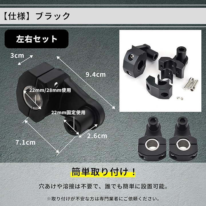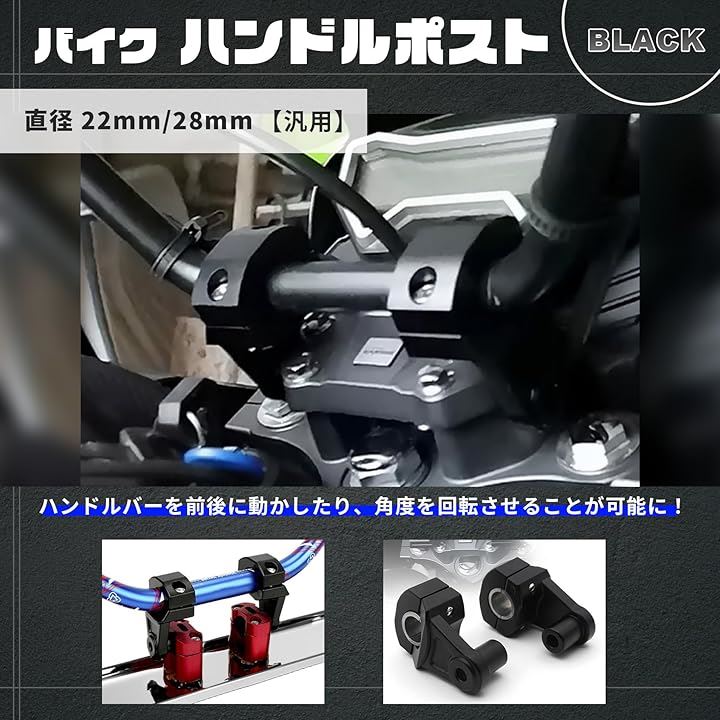 互換品 バイク ハンドルポスト 直径 22mm/28mm 汎用 オートバイ ハンドルバー クランプ ライザー