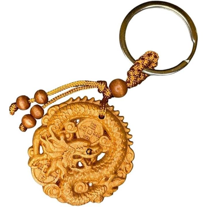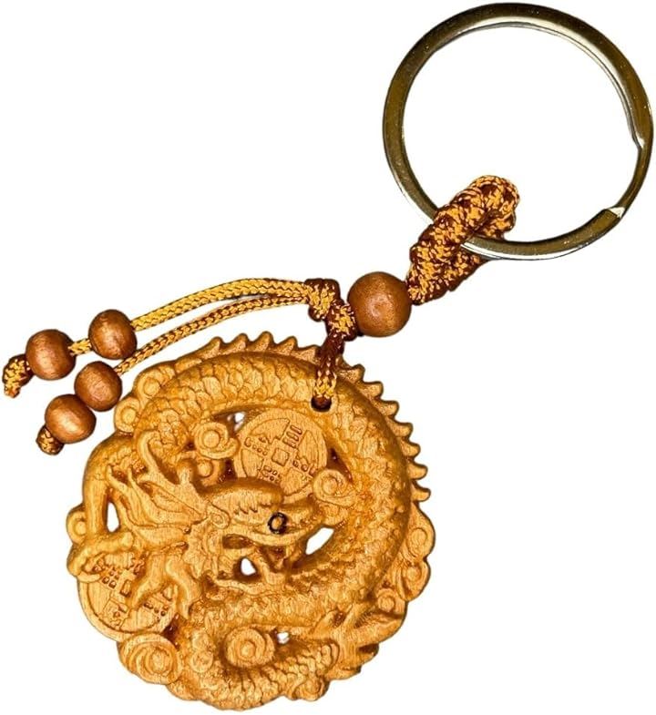 キーホルダー 龍 根付 ストラップ 木彫り 風水 グッツ 金運 天然 木製 根付け 青龍 竜 彫刻 龍円満