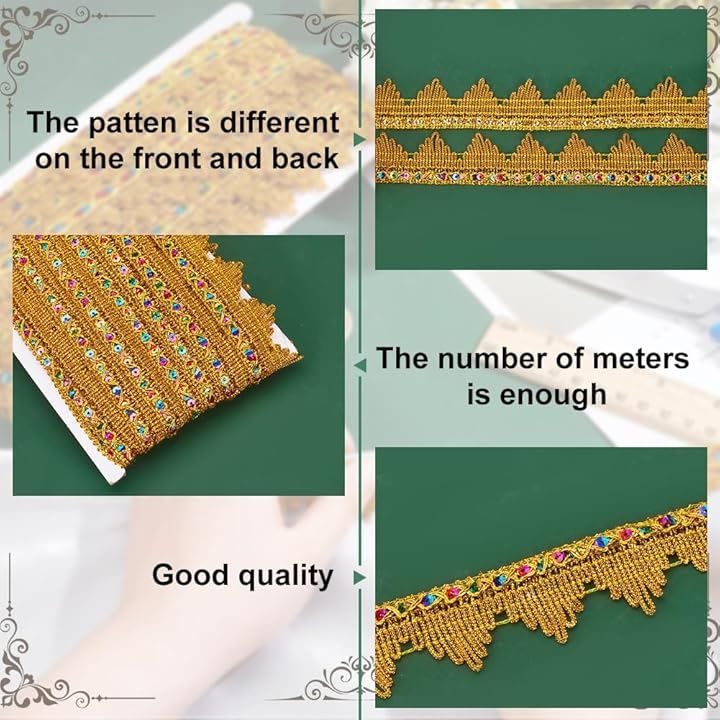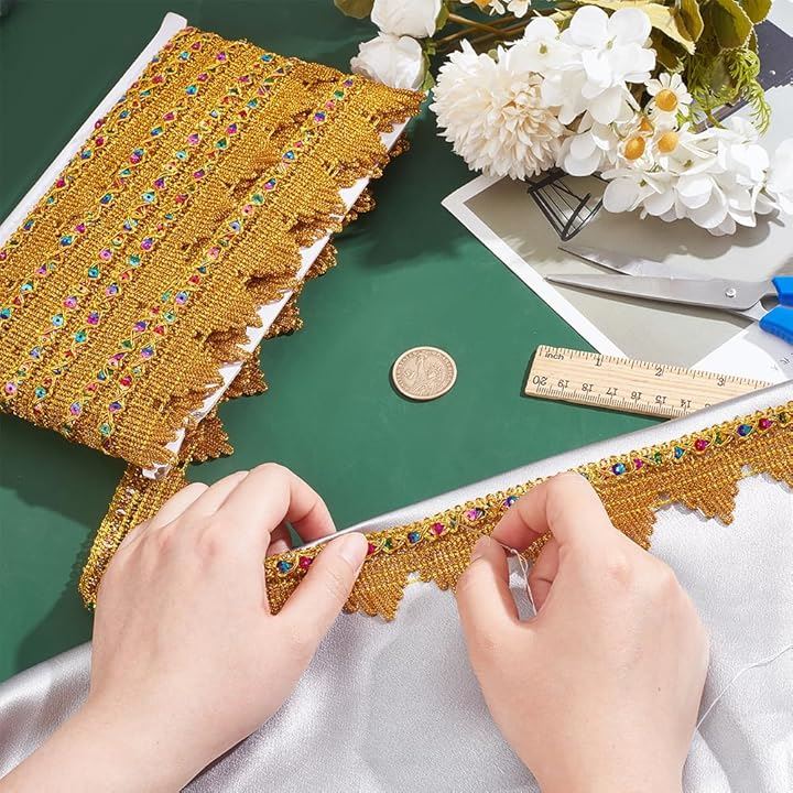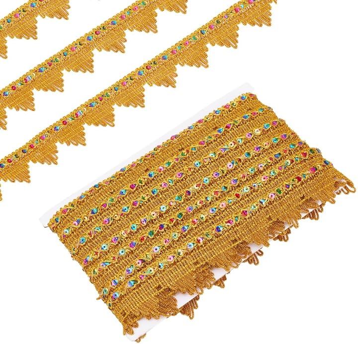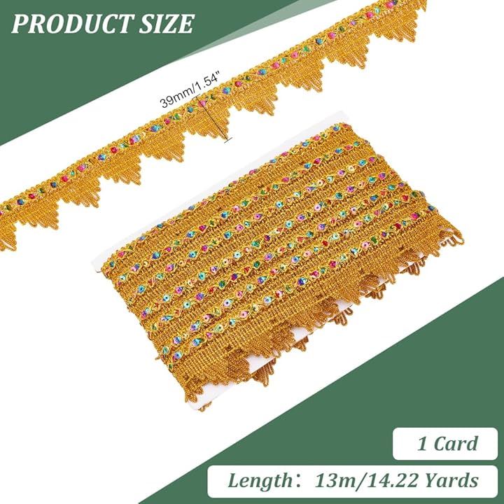 13メートル ゴールド スパンコール レース ビーズ レーストリム メタリック レースリボン ヴィンテージ クリスマス ブレード 手芸 帽子 バッグ デコレーション用 高級 飾りアクセサリー おしゃれ 華麗