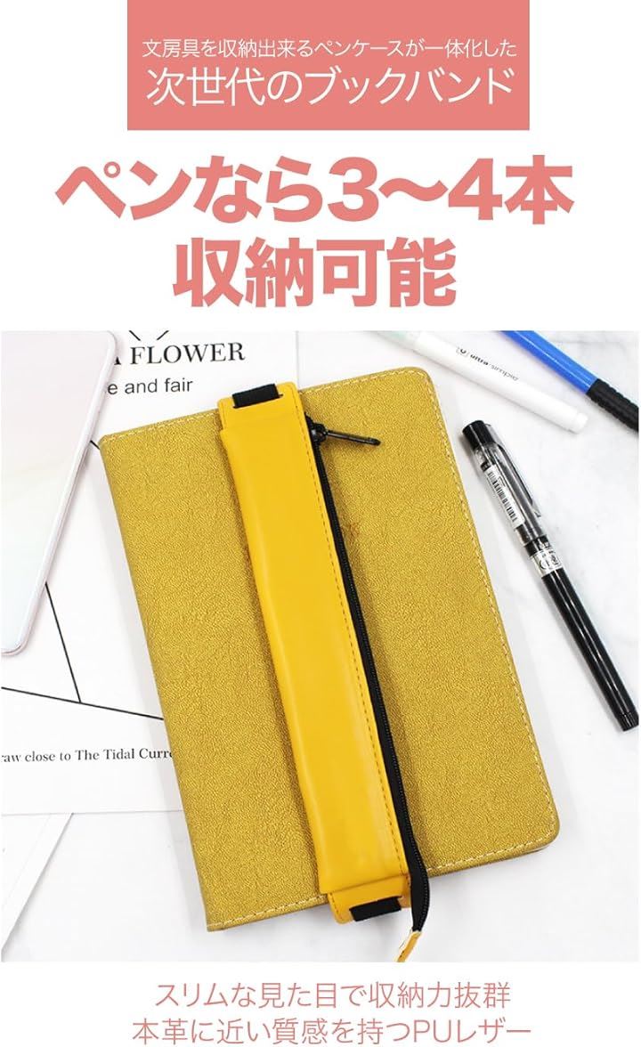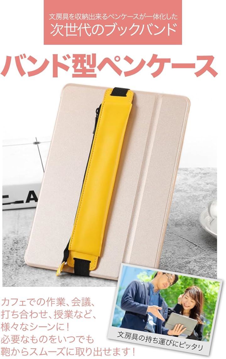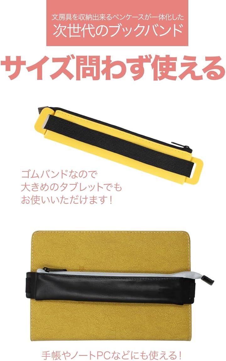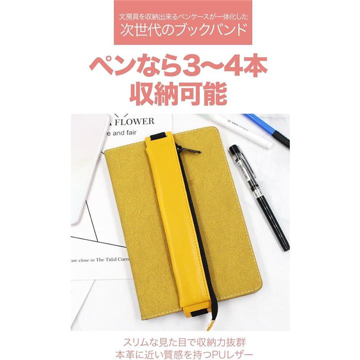 AllBright ブックバンド ペンケース ペン入れ PUレザー 伸縮バンド付き タブレット 手帳 ノートPC