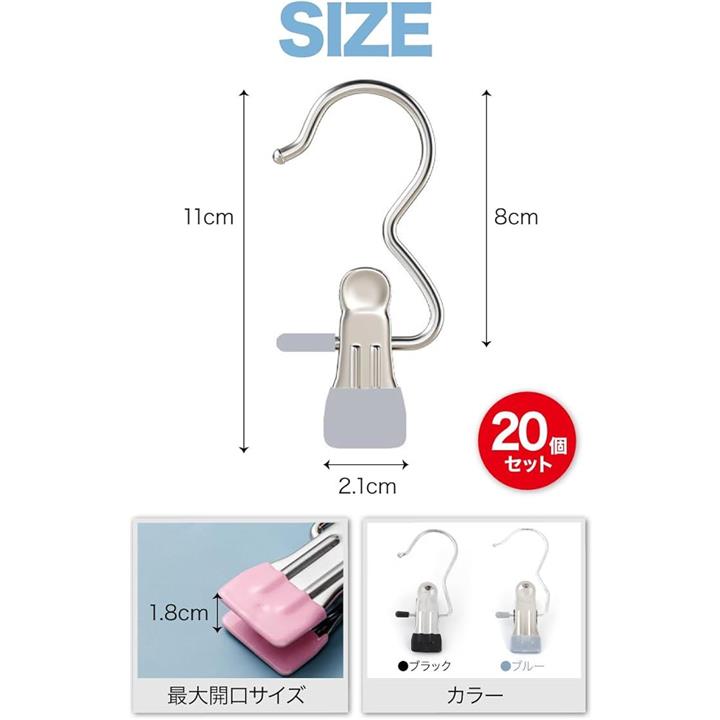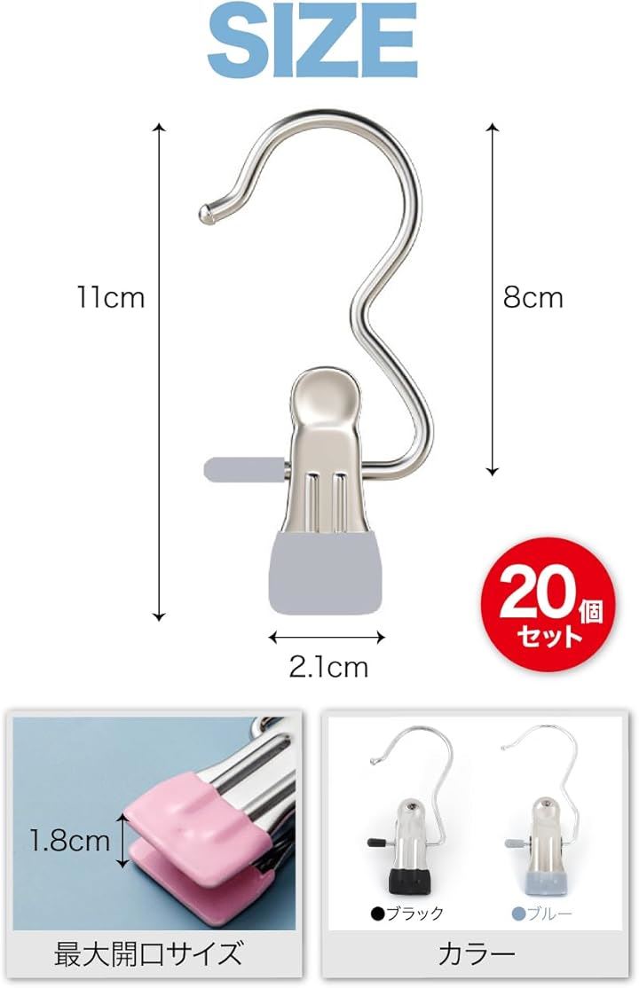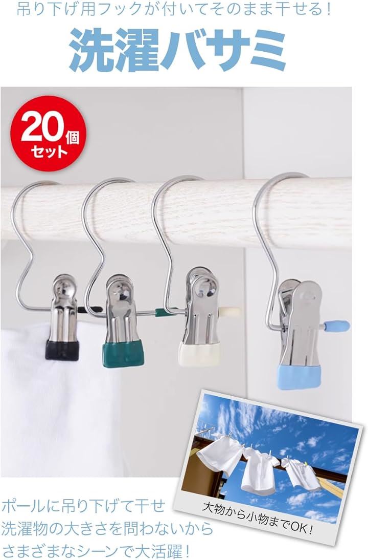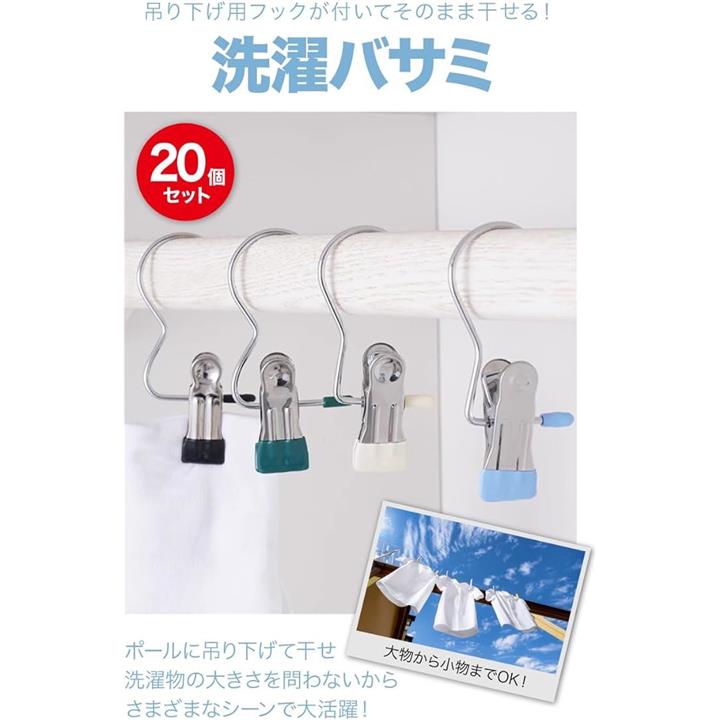 AllBright 洗濯バサミ ハンガー クリップ 物干し フック付き ステンレス 洗濯物 20個セット