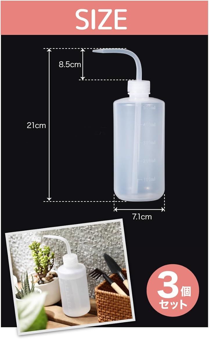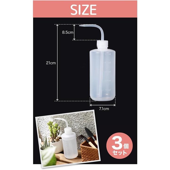 AllBright ウォッシュボトル 噴出ボトル 水やり 園芸 500ml 目盛り付き 植物 半透明 3個セット