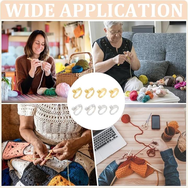 8pcs 指ガイドかぎ針編み かぎ針編みテンションリング かぎ針編みカウンター 針編み編み物アクセサリー 調節可能 手作り編み物指ぬき 裁縫用品 手織り用アクセサリーな編み物