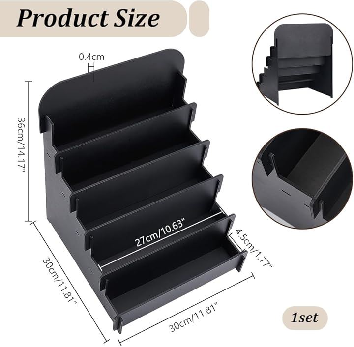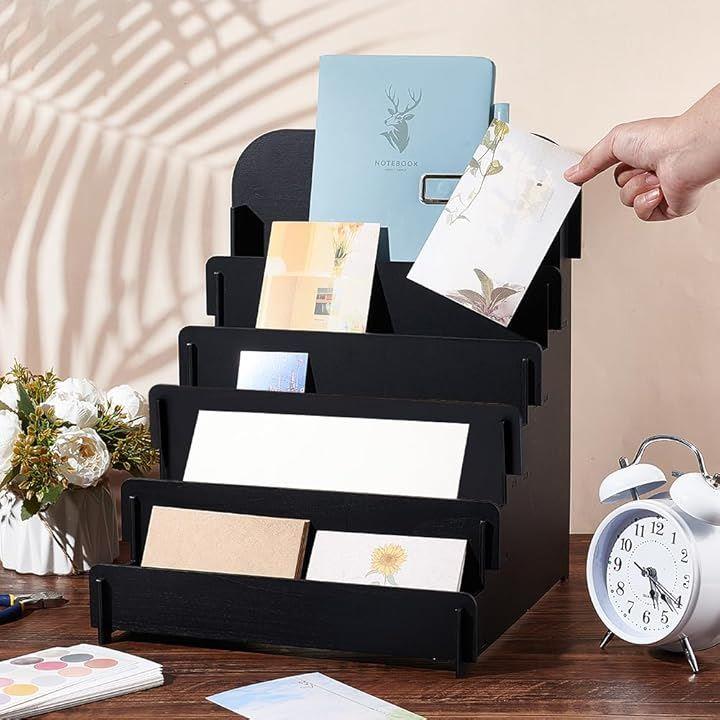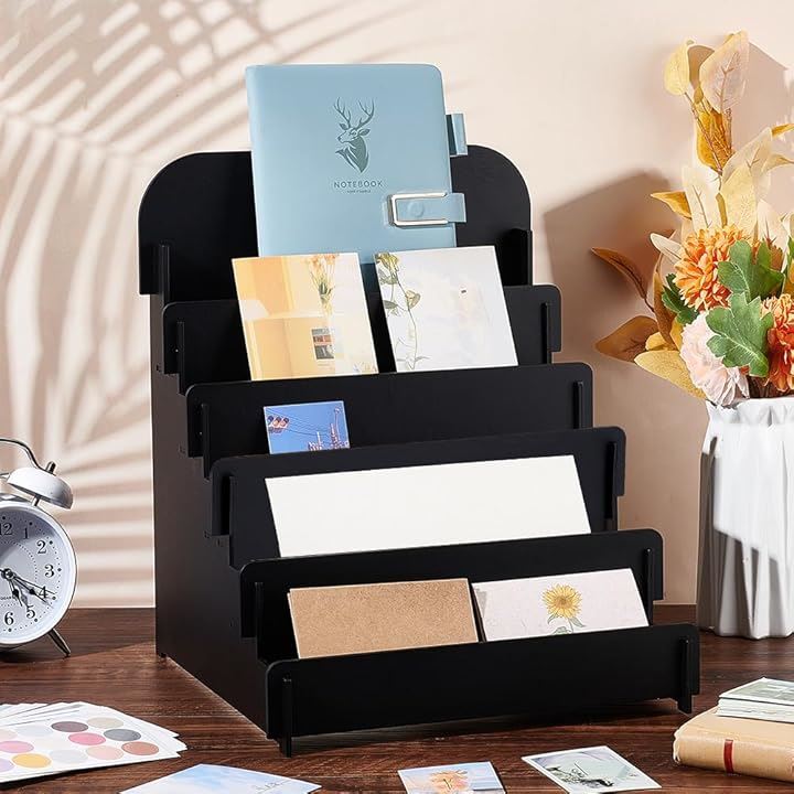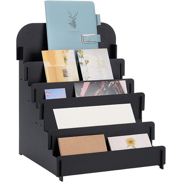 グリーティングカードディスプレイラック 5段 ブックディスプレイラック 木製 ディスプレイスタンド 整理ラック クラフトショー 小売カウンター 写真 誕生日カード 野球カードホルダーの表示に最適 収納ラック ブラック