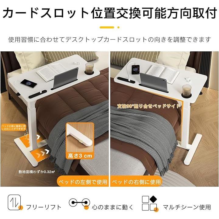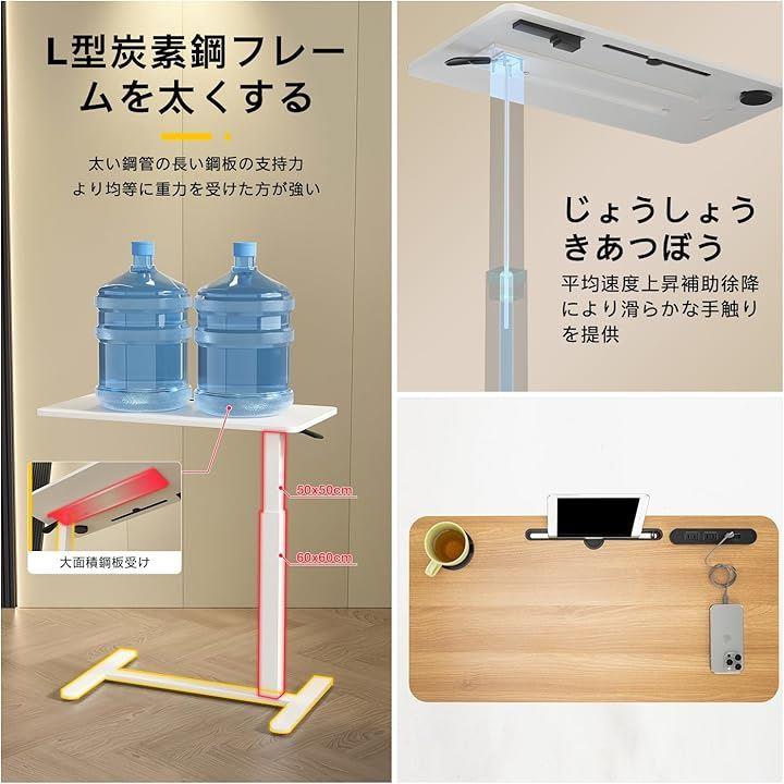 サイドテーブル昇降式 ガス圧昇降ベッドテーブル PCテーブル