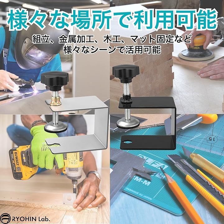 良品ラボ クランプ c型クランプ デスク キャビネット 固定 作業 DIY 調節可 4個セット