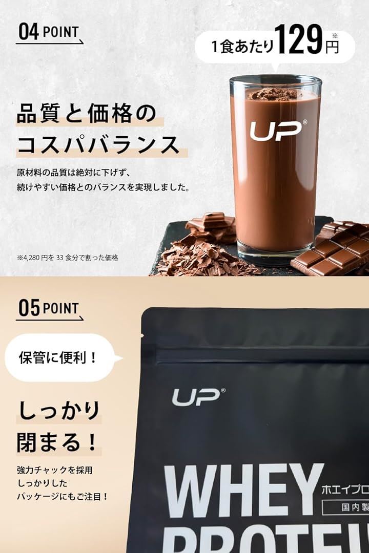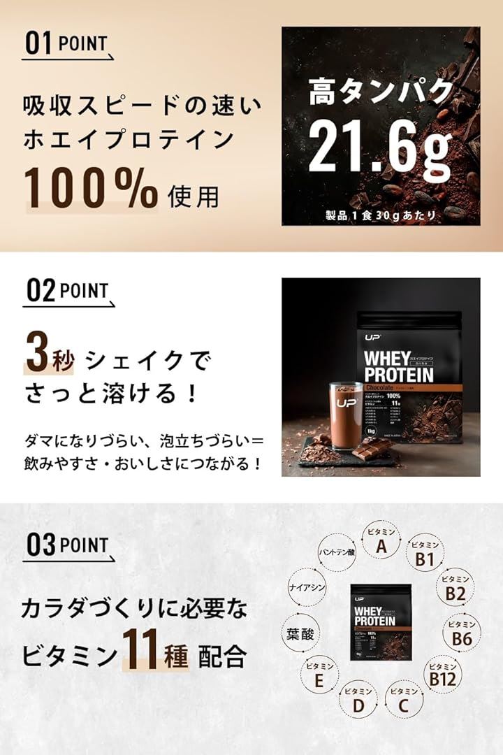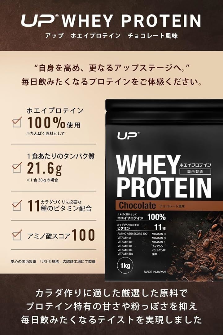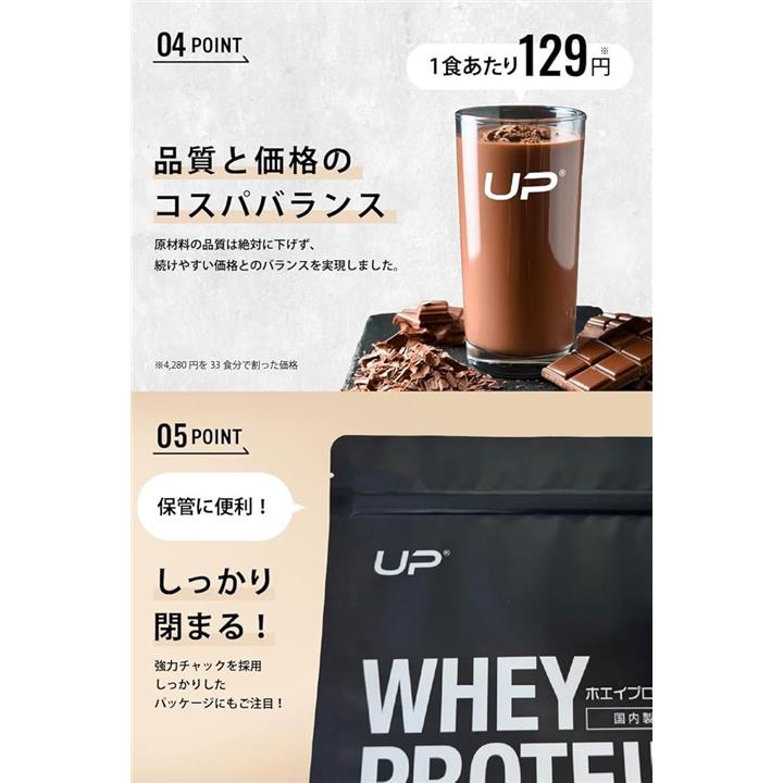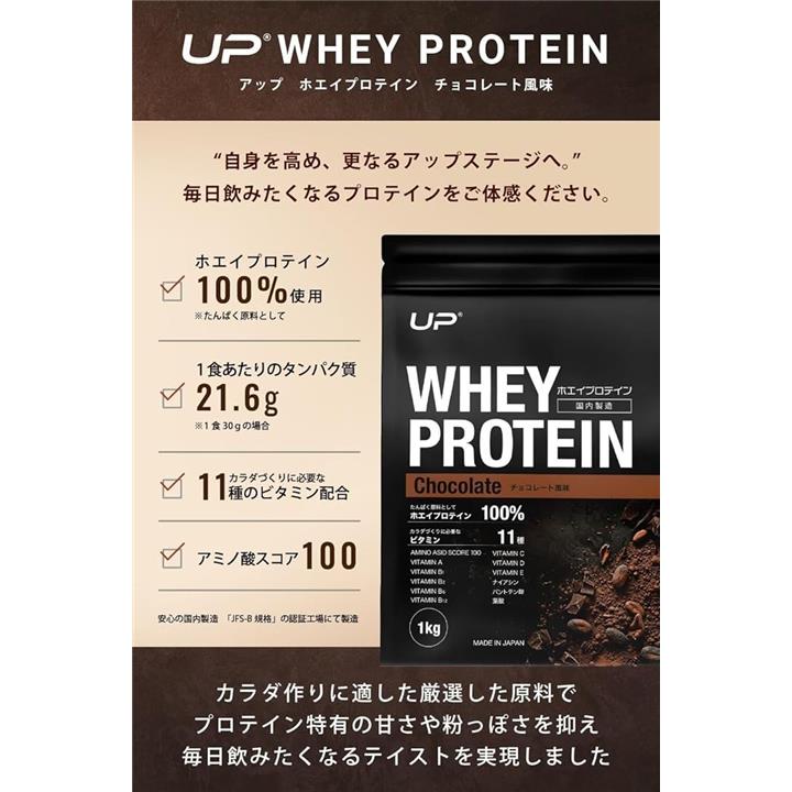 UP ホエイプロテイン100% 国内製造 アスリート トレーニング 減量期・増量期 ダイエット ビタミン11種配合 アミノ酸スコア100 ぷろていん 高タンパクWPCプロテイン