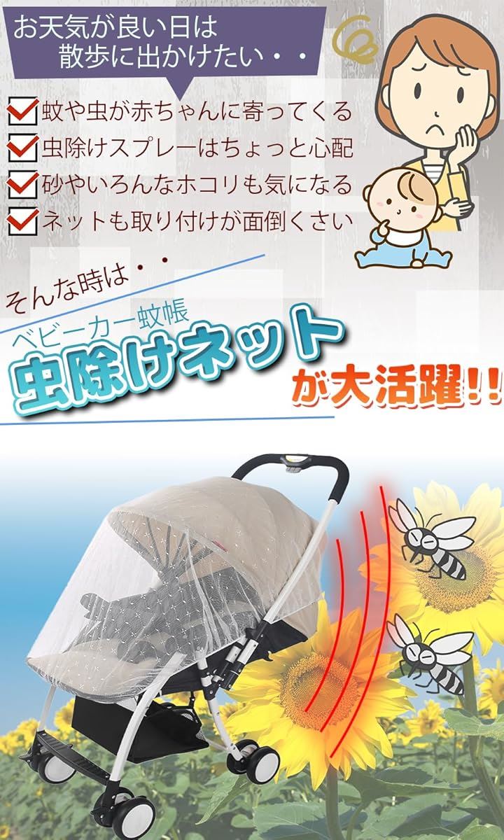 parabito22 ベビーカー蚊帳 ベビー蚊帳 蚊帳ベビー 虫除け 日よけ 風よけ ネット カバー baby car 虫除けネット