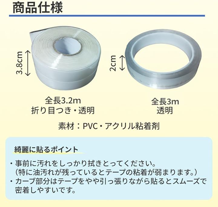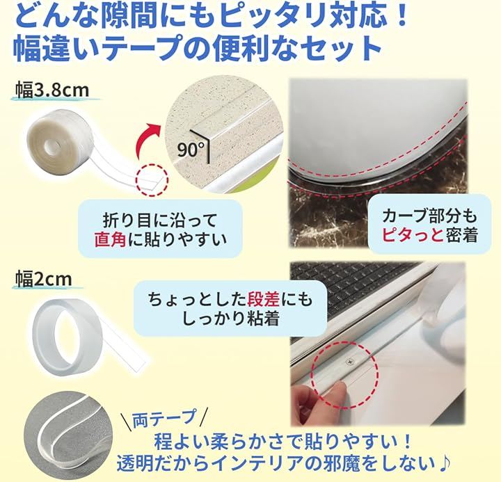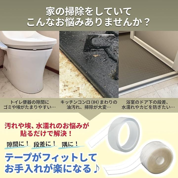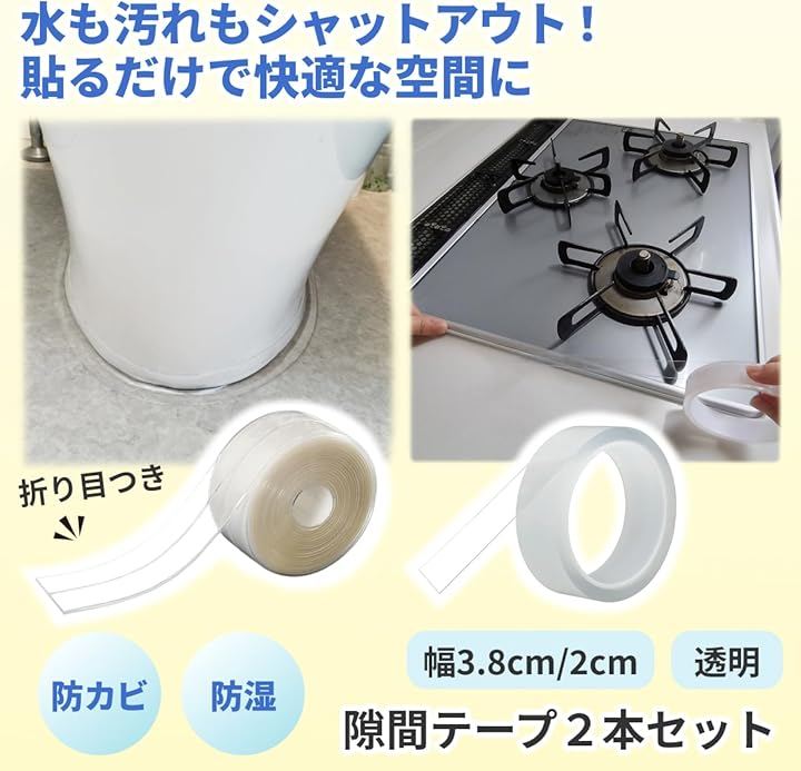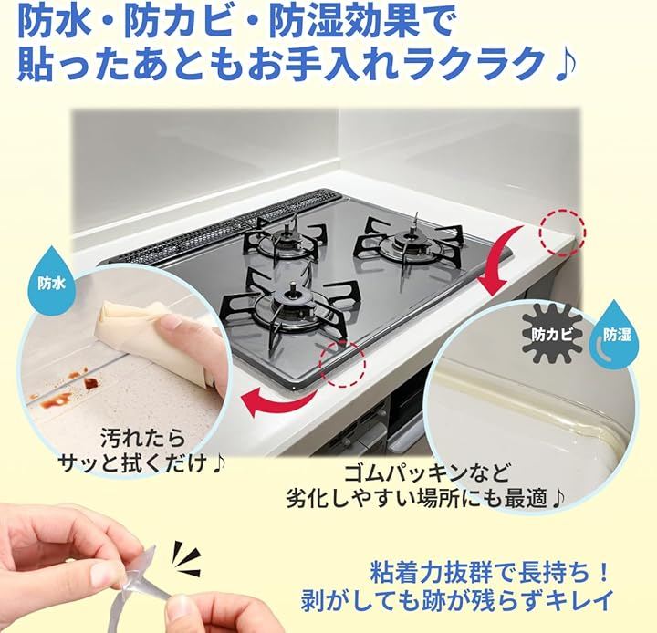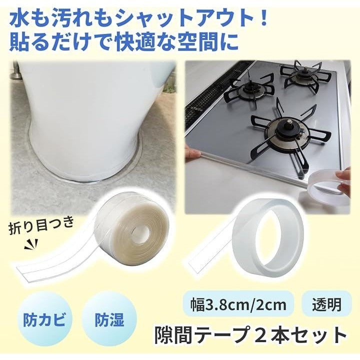 トイレ隙間テープ 防カビ 透明テープ 粘着テープ ガスコンロ 防水 跡が残らないテープ