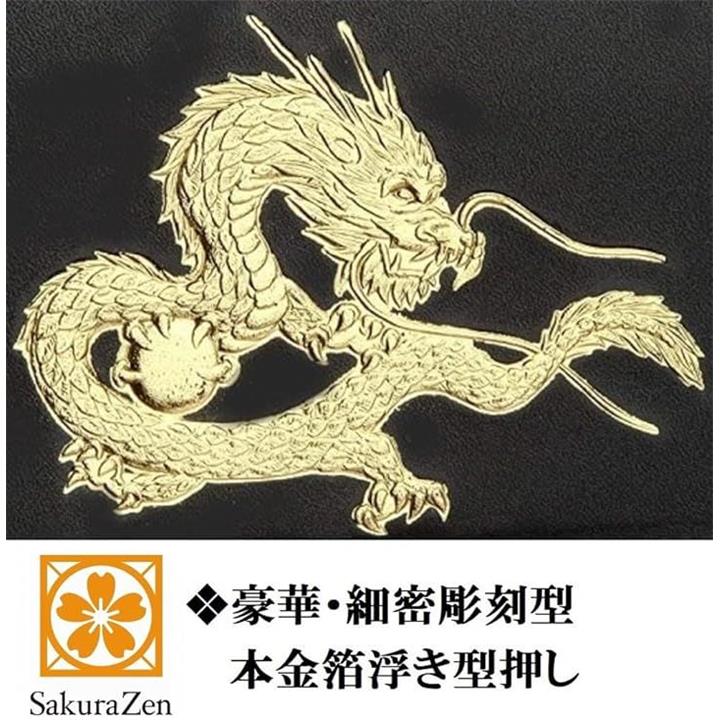 風水 秘伝 皇帝龍 長財布 金運 アップ 本金箔 刻印 牛 本革 メンズ 黒色 ブラック 黄金 根付 進呈 日本製